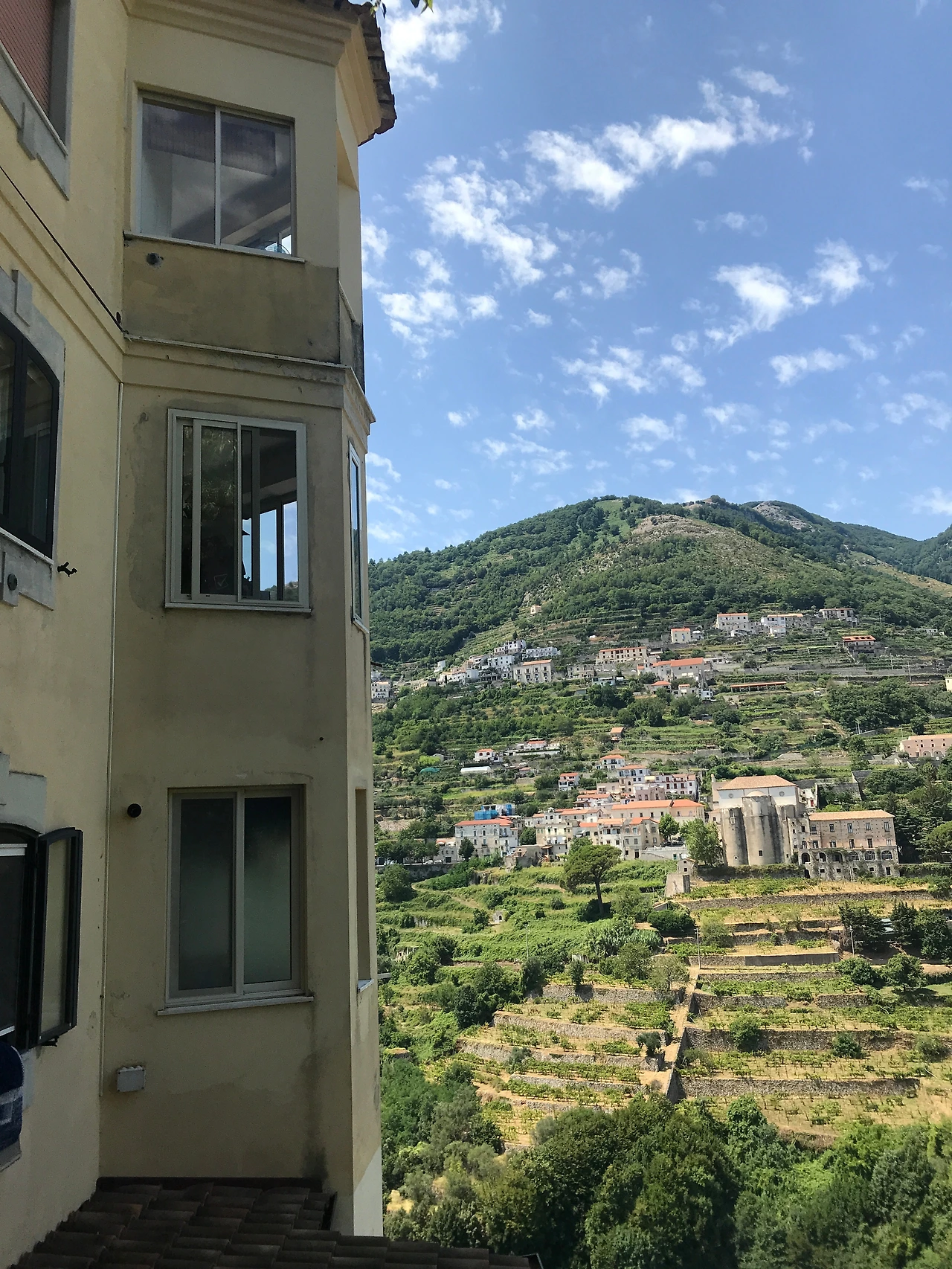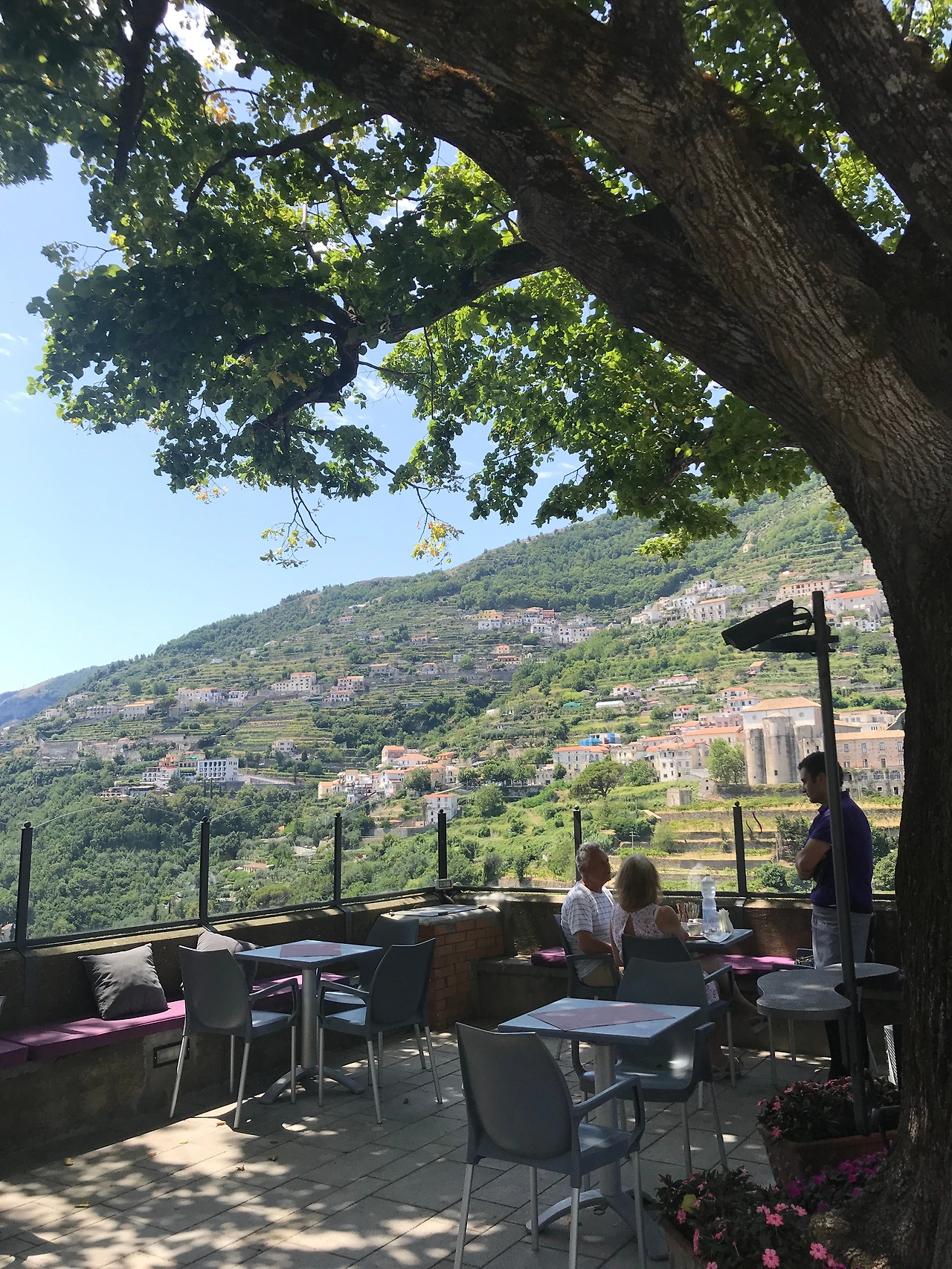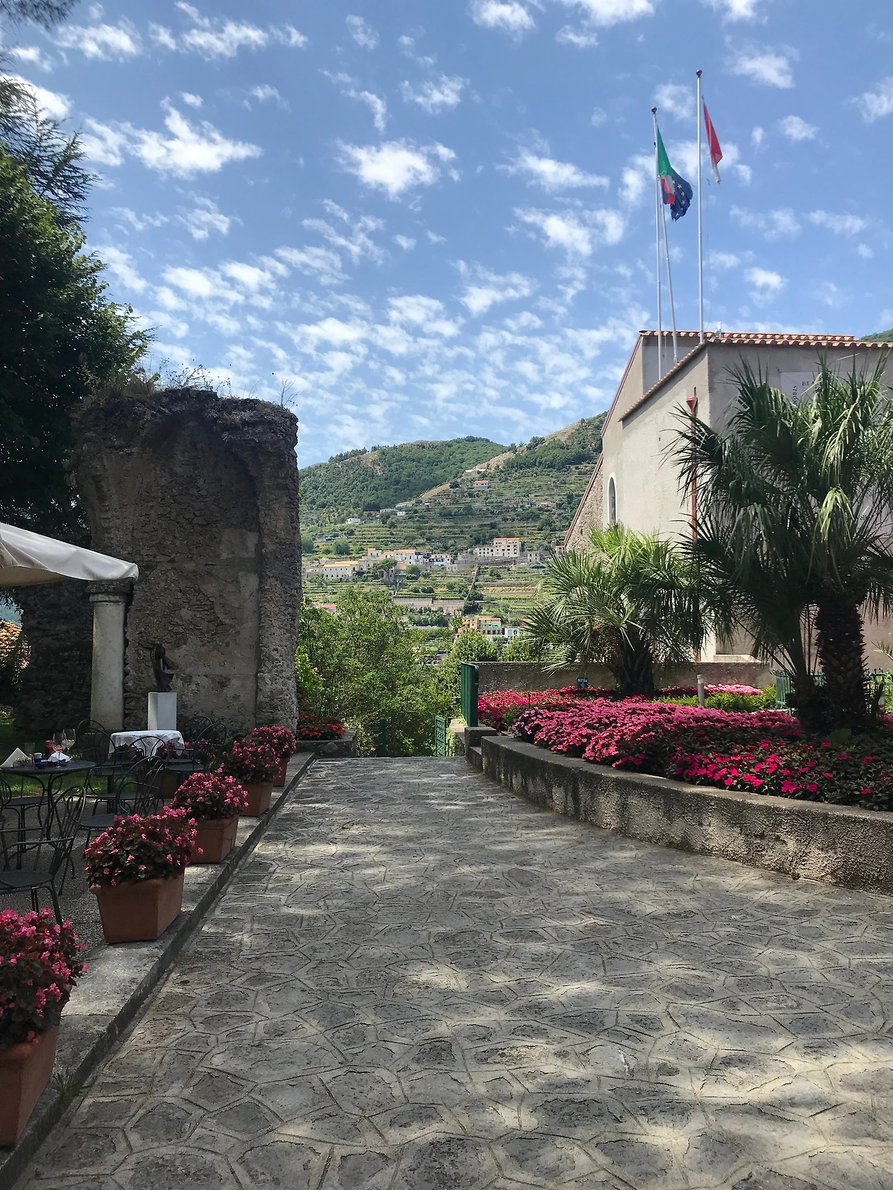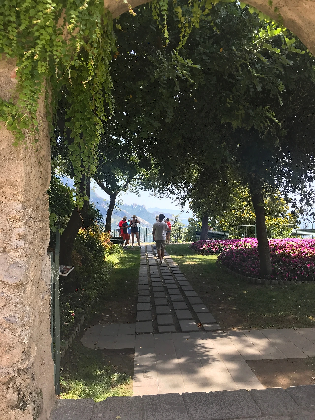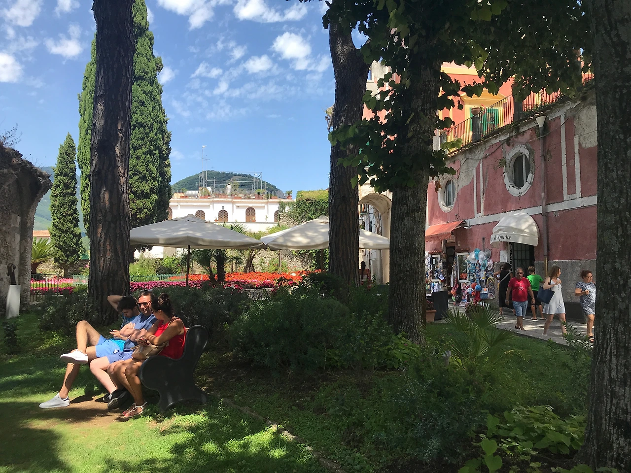 그렇게 한참을 걸어 올라 드디어 라벨로에 도착했다. 땀을 한 통은 흘린 것 같은데, 그 고됨을 단숨에 씻어버릴 만큼 라벨로는 너무도 아름다웠다. 어디에 시선을 두어도 아름다운 풍경과 그와 어우러지는 근사한 건물들이 눈을 즐겁게 해주었다. 절벽 중간에 위치한 마을이라 가까이에는 푸르른 나무에 둘러싸인 풍경과 저 멀리로는 지중해 바다가 보였다.