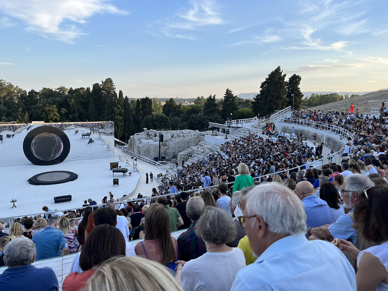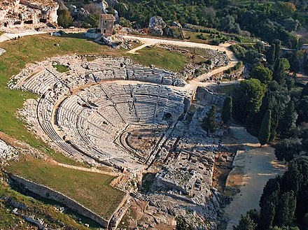 평소에는 옆에 있는 고고학 박물관과 함께 여행객들의 유적지로 존재하지만, 매년 5월부터 7월까지 두 달 동안은 야외 오페라의 극장으로 이용되면서 반짝 되살아난다. 수준이 높다고 명성이 난 이탈리아 국립 연극단에서 매년 다른 프로그램으로 고대 그리스 연극을 올린다. 매년 여름이면 시칠리아 전역에서 사람들이 이 공연을 보기 위해 시라쿠사로 몰려든다고 한다.
