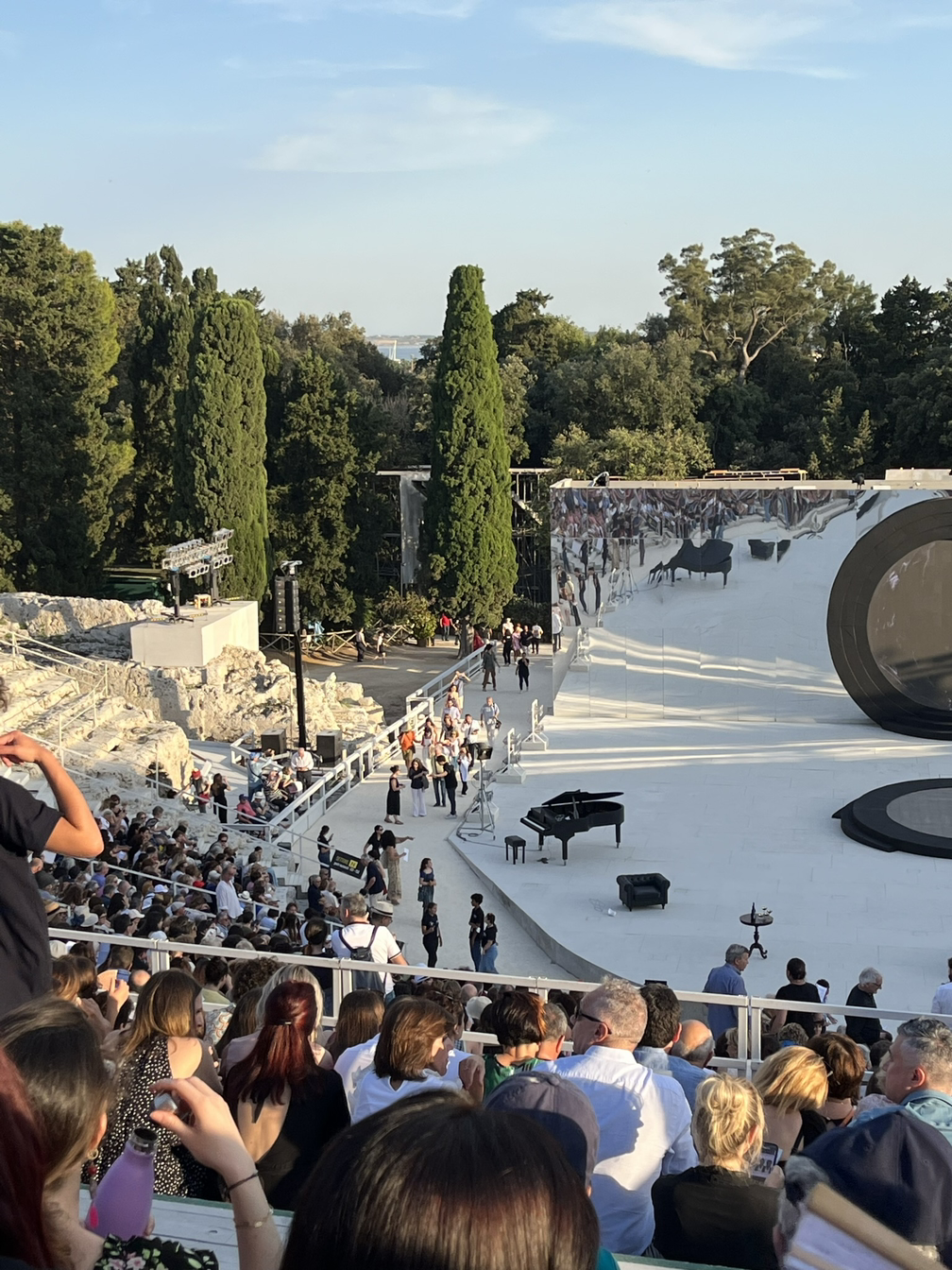 공연장에 가까워지자 노천극장의 하얀색 대리석이 눈이 부셨다. 어마어마한 규모의 극장이니만큼 모든 좌석에서 다 보일만큼 큰 무대가 눈에 들어왔다. 티켓 가격은 30유로부터 100유로 정도까지 좌석에 따라 달라졌는데, 공연의 규모나 퀄리티를 생각하면 저렴한 편이라는 생각이 들었다.