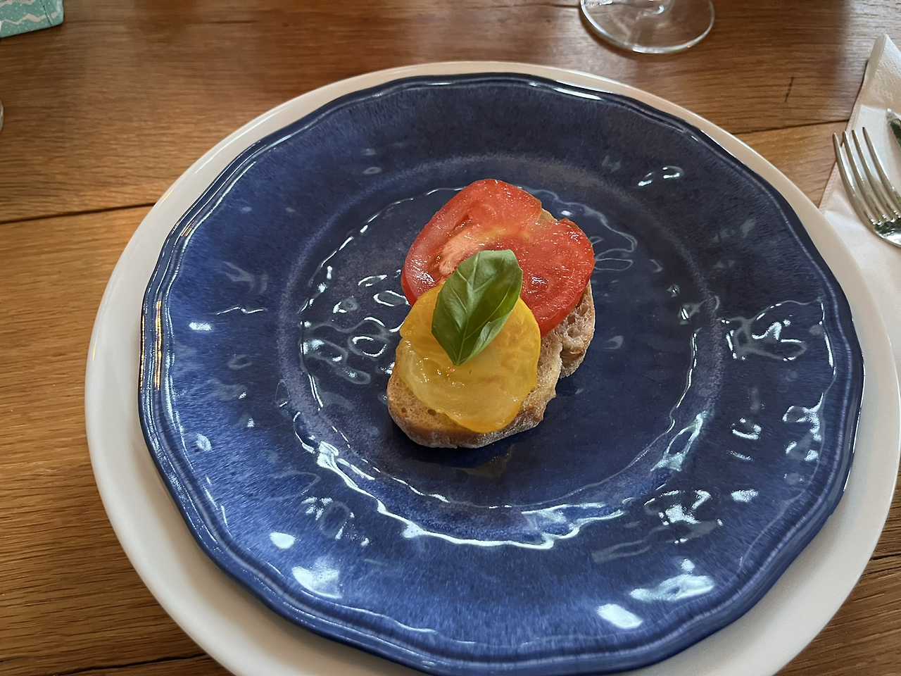 물놀이가 끝나고 집으로 돌아와 야외 테이블에 앉아 시원한 화이트 와인을 마셨다. 저녁을 준비하는 모녀 사이를 오가며, 별 도움도 못 되는 사이에 저녁이 금방 완성되었다. 이탈리안 저녁이었다. 토마토+바질 부르세따에, 볼로냐 스파게티, 샐러드, 그리고 구운 야채가 나왔다. 맛있는 레드와인을 곁들여 먹었다.