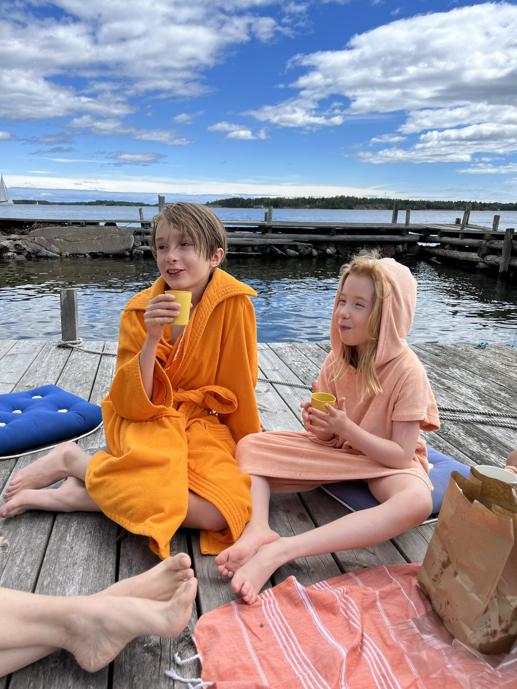 조금씩 추워지기 시작해서 사우나를 들어갔다. 물가에 위치한 스웨덴식 건식 사우나는 작고 귀여웠다. 옹기종기 네 명이 앉아 뜨끈한 스팀에 몸을 녹였다. 아아아-너무 좋다는 말이 절로 나오는 기분 좋은 따끈따끈함이었다.