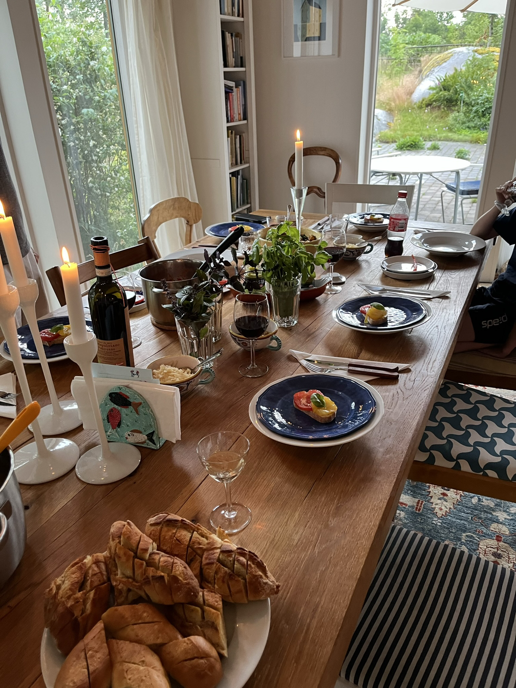 스웨덴에서의 치즈 보드는 진저 쿠키에 고르곤 졸라 치즈를 얹어 먹는다. 달콤한 진저쿠키에 크리미하고 꼬릿한 고르곤 졸라 치즈가 더해지니 환상적인 맛을 낸다. 스웨덴 스타일의 건배 방식을 배웠다. 건배를 하는 사람들끼리 한 명씩 눈을 마주치고, “스콜(건배)”이라고 외치고 한 모금 마시고는 또다시 아이컨택을 한 후에 그제야 잔을 테이블에 내려놓는다고 했다. 마치 나는 너의 존재를 음미하고 있어,라고 말하는 것 같아서 좋았다.