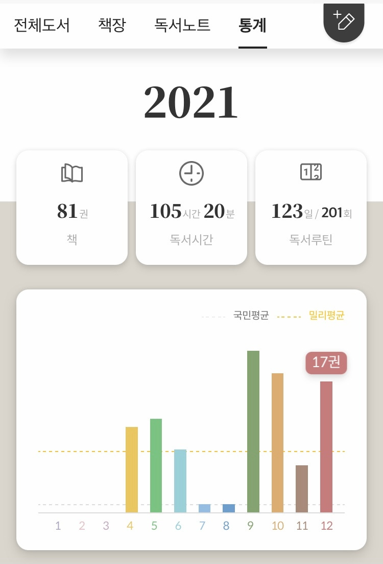 연간구독권으로 이용하고 있는 밀리의 서재의 통계에 따르면 올 한 해 나는 81권의 책을 읽었다고 한다. 아마도 다운로드 받아서 몇 장을 뒤적거리다가 만 책이 대부분일 테고, 완독한 책은 스무 권 정도가 아닐까 싶다. 그래도 외국에서 살면서, 특히 한국에 가지 못했던 이번 해에 밀리의 서재가 있어서 새로 나온 책들을 둘러보거나, 관심이 생긴 작가들의 책을 뒤적여보거나 하는 등의 책방의 경험에 가까운 일들을 할 수 있었다.