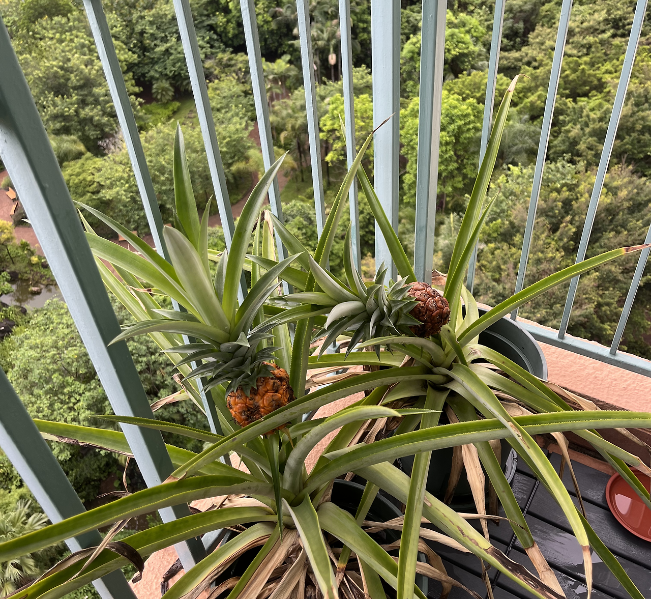 심란한 마음으로 베란다에 나가보니, 놀랍게도 방치되어있던 화분에 파인애플이 열려있다. 파인애플을 먹고 남은 꽁지에 싹을 틔워, 화분에 심으면 파인애플이 열린다는 말을 듣고, 그렇게 했던 게 2년 전이었는데, 정말 파인애플이 열렸다.