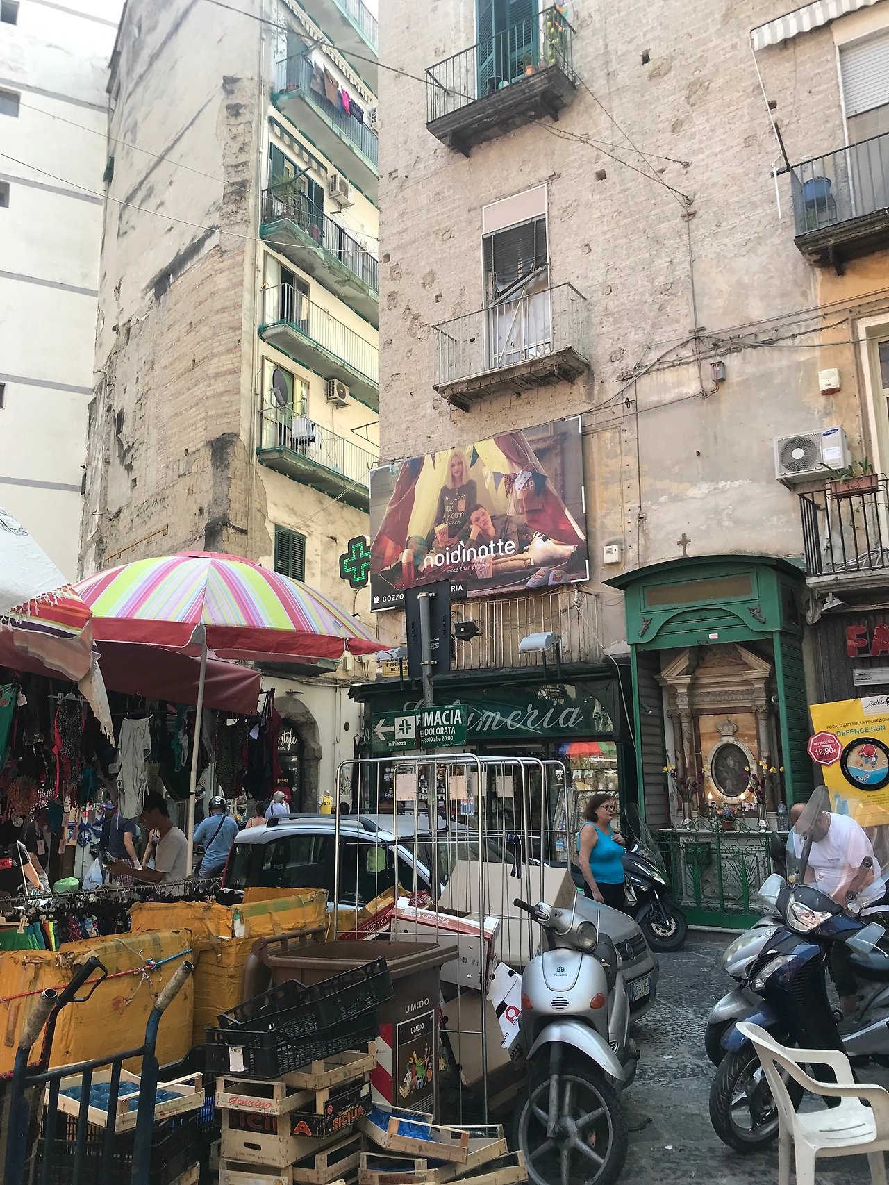 기차를 타고 내렸을 때, 방콕을 닮은 혼잡스러운 도시가 나폴리의 첫인상이었다. 거칠게 달리는 차들, 오래되고 낡은 빌딩, 내용물이 넘쳐흐르는 쓰레기통, 하늘을 올려다보는 시야를 가리는 전선줄들, 권태로운 얼굴의 길거리 상인들과 세련된 메트로폴리탄 보행자들의 대비. 우리가 흔히 이탈리아에서 기대하는 고풍스러운 아름다움의 대척점에 있었다.