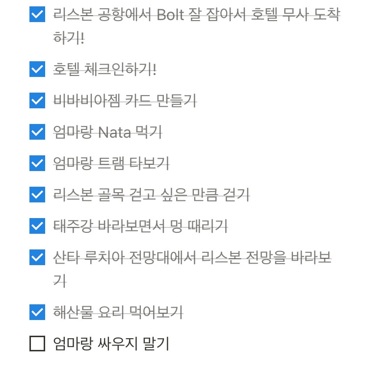 이후에도 내 과실 99%로 엄마와 몇 번 다투고 손 잡기를 반복한다. 여행을 돌아보면 엄마에게 미안한 기억이 너무 많은데, 엄마는 리스본을 생각하면 행복한 기억, 고마운 기억뿐이라고 한다. 엄마는 아직도 리스본 이야기만 나오면 아이처럼 좋아한다. 엄마의 너무나 후한 감상이 나에게 새로운 여행을 계획하게 한다.