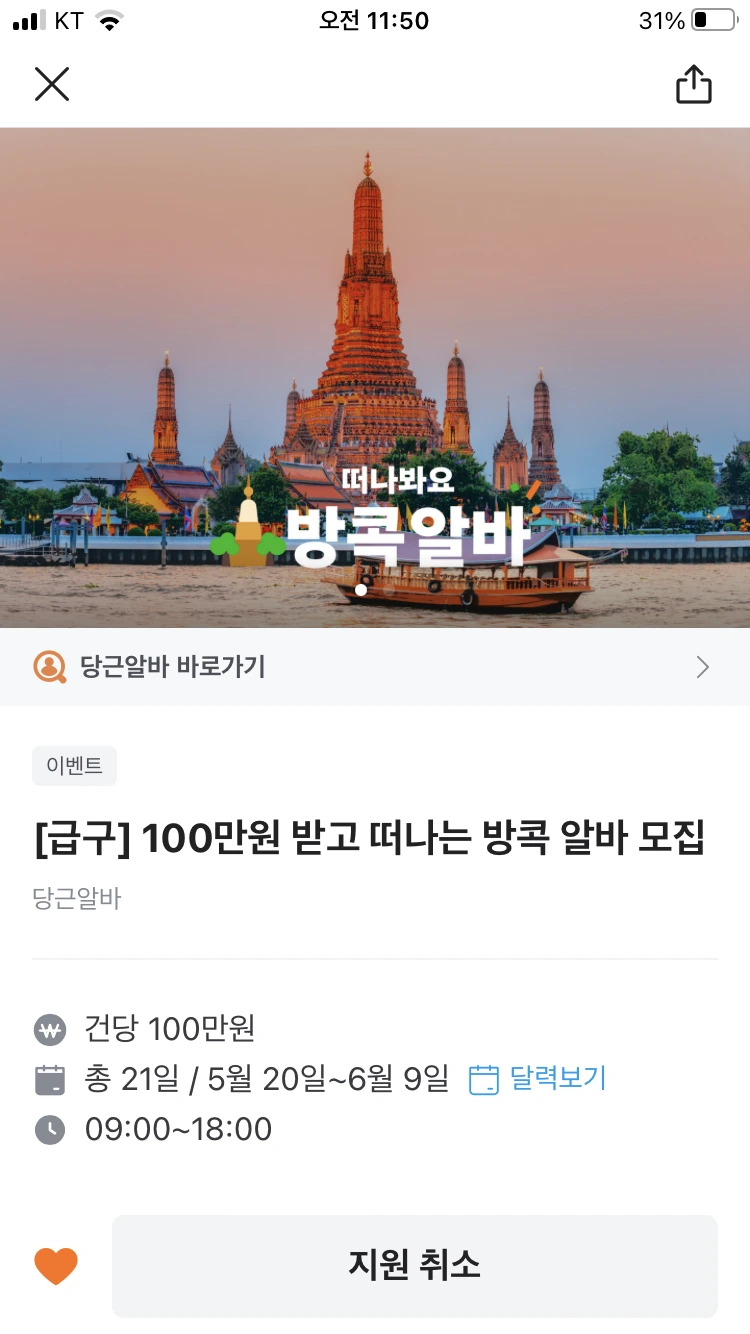 떠나고 싶지만 돈은 없던 나는, 여행 지원금을 받아 방콕으로 떠날 기회를 무조건 잡고 싶었다.