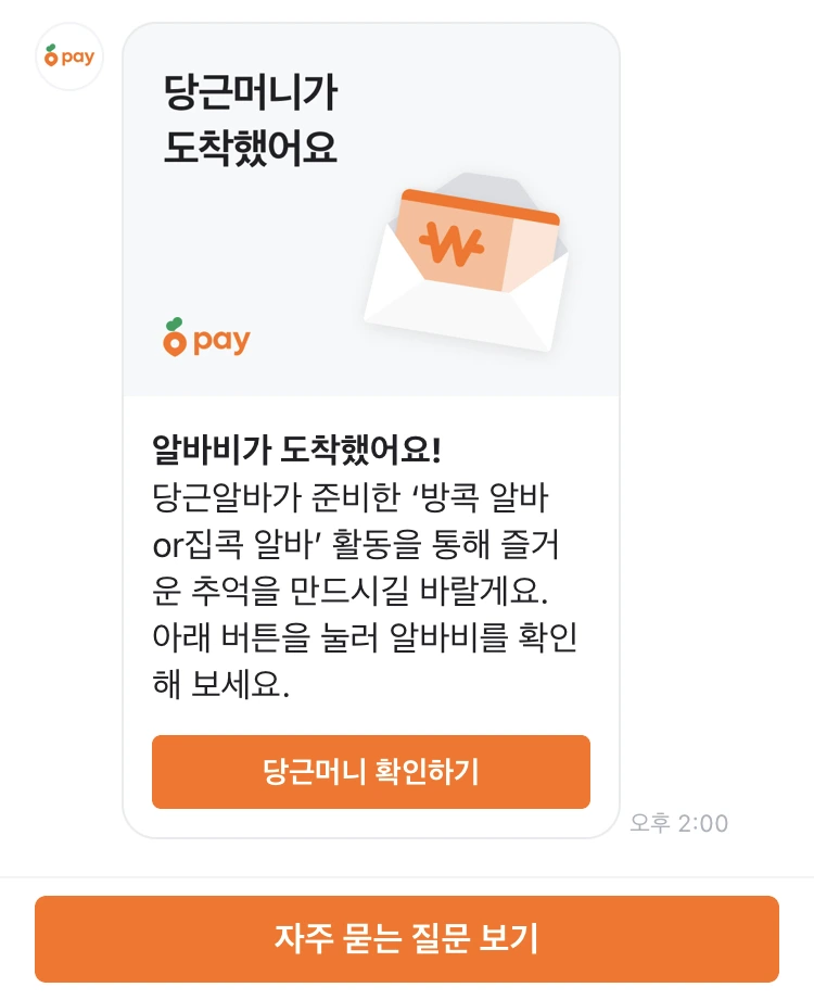 그리고 알바비! 알바생으로 선발되고 일주일 뒤에 당근페이를 통해 지급받았다.