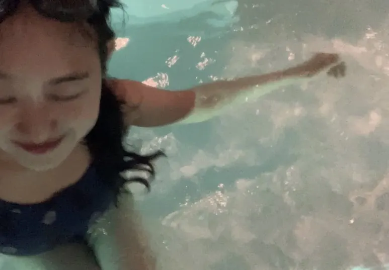 수경 없이는 눈뜰 수 없을 정도로 비가 내렸지만 두 눈으로 흘러들어오는 빗물을 그대로 맞으며 배영을 했다. 수영장 옆 baby bar에서는 라이브 공연이 시작됐는데 물 속에서도 노래가 들렸다.