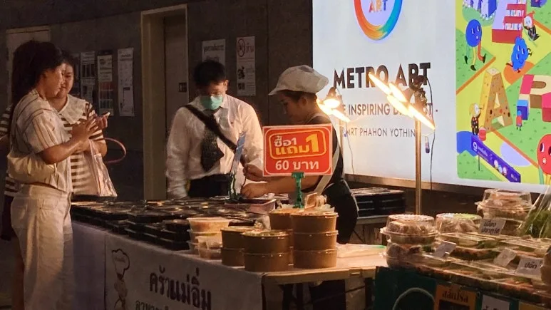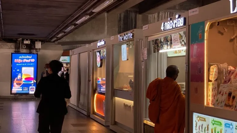 대체적으로 옷, 화장품, 악세서리 상점이 모여있는 우리나라 지하상가와 달리, 간식부터 간단한 식사류를 파는 가게가 많은 방콕의 지하상가. 통로 한 가운데 식사할 수 있는 긴 테이블이 쭉 이어진 장면이 인상적이었다. 방콕도 1인 가구가 많아지고 있을까? 퇴근길 음식을 포장하는 사람, 지하상가의 단체 테이블에서 저녁을 해결하는 사람을 보면서.. 또 길거리 식당에서 음식을 포장해 출근하는 사람들을 보면서... 그런 생각을 했다.