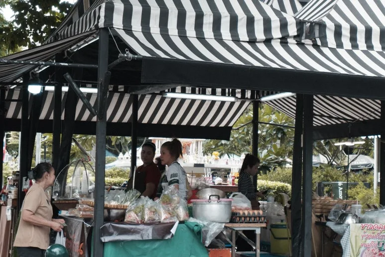 직장인 대부분은 투명비닐에 포장한 음식을 들고 출근하고 있었다. 도대체 어디서 파는걸까. 사람들을 따라가보니 회사 앞에서 음식을 파는 노점들이 하나 둘 나타났다. 휘황찬란하게 팟타이를 볶는 길가의 셰프를 보며, 나도 저거 해보고 싶은데? 라고 생각했다. 그렇게 나는 즉흥적으로 오늘 점심에 시작하는 쿠킹 클래스를 신청했다.