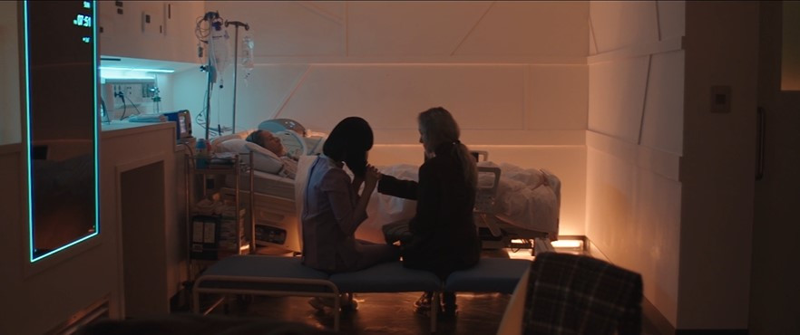 그런데도 간호중은 ‘호중 씨’라고 불리는 것을 더 선호하거나 정인이 종이에 손을 베여 피가 고이자 침이 없는데도 손가락을 자신의 입 안에 대는 모습에서 인간과 유사해지고 싶어 하는 욕망이 조금씩 드러난다. 하지만 결정적으로 간호중이 인간의 마음을 이해하고 실제로 마음을 느끼게 된 계기는 시뮬레이션되지 않은 선택의 순간(굉장히 인간적인)을 맞닥뜨린 이후다. 간호중은 자신의 돌봄 대상 1호 어머니가 이 상태로 계속 살아있는다면 돌봄 대상 2호인 정인이 자살로 생을 마감할 확률이 95%라는 것을 감지하고 돌봄 대상 1호를 자신이 죽여야 하는지 괴로운 고민에 빠지며 인간의 불행을 겪기 시작한다.
