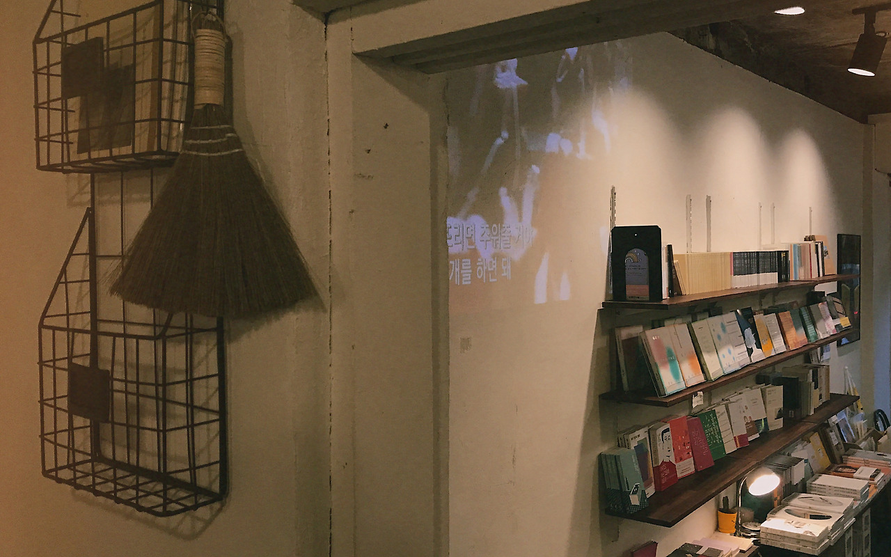 오늘은 고독한 책을 한 권 사면 좋겠다고 중얼거리며 왔어. 주신 보리차가 천천히 식어가는 동안 꽤 오래 책방 구석구석을 뒤진 것 같아. 이 책 저책 뒤적이다가 책 소개가 적힌 메모들을 하나씩 읽어보기도 하고, 사람들이 돌아가면서 책을 필사하고 있는 노트에 나도 한 줄 거들었지. 이런 작은 책방은 주인장의 취향이 빽빽하게 들어차 있으니까 책의 진열 방식이나 조용히 깔리는 BGM만 유심히 들여다봐도 시간 가는 줄 모르게 돼.