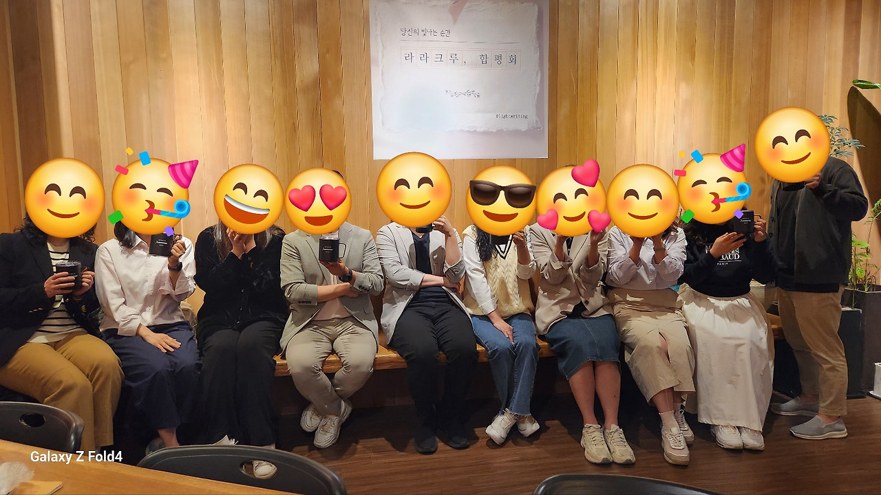 글을 쓰면서 글동무 말동무를 만난다는 건 참 행운이다. 내가 일일이 말하지 않아도 나의 글을 읽어주고 공감해 주는 작가님들이 있어서 행복하다. 물리적인 거리가 있지만, 심적 거리가 가까우니 이렇게 합평회까지 오게 되는 것 같다. 합평회의 늦은 후기지만, 한분 한분 생각하며 후기를 쓰고 싶었다. 그때의 그 느낌. 그 감정. 일이 생겨서 합평회에 못 오시는 분들도 계시지만, 계속해서 끈끈해지는 연대감이 있으니 계속해서 라라크루에 머물며 글을 써 나가셨으면 좋겠다. 라이트 라이팅!