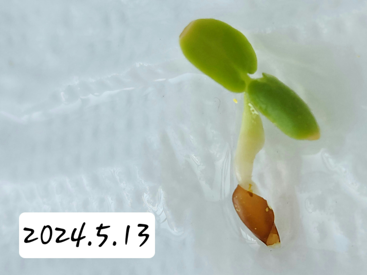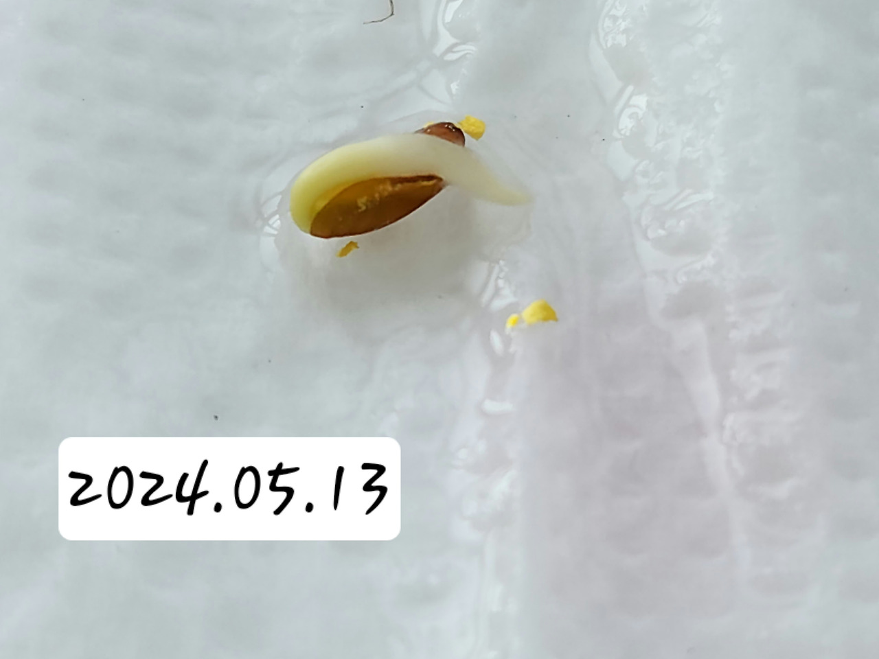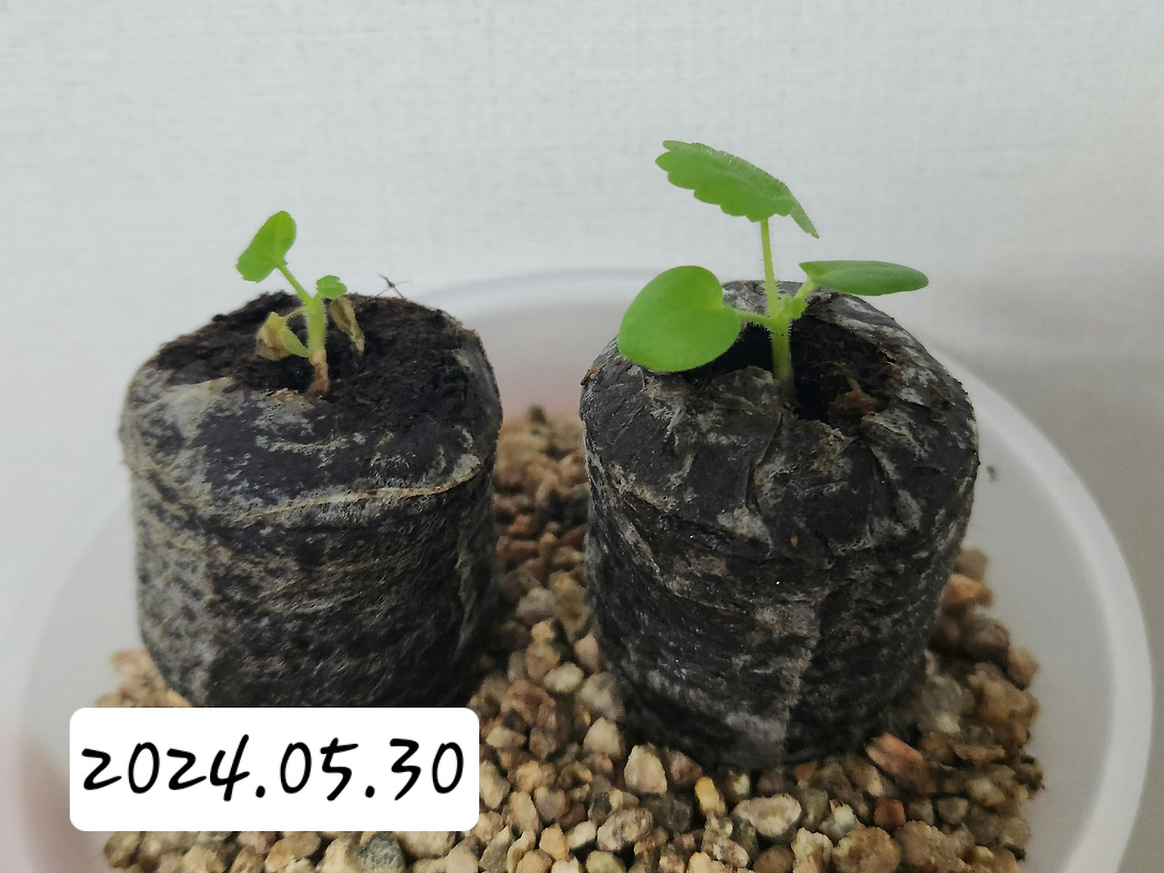 24일이 지난 지금(2024.05.30) 새싹의 상태예요. 초록 새싹 쌍떡잎 위로 본 잎들이 올라오고 있어요. 애플 블로섬은 잎에 물이 닿여 조금 노랗게 변했는데 그래도 본 잎을 틔울 수 있어서 다행이에요.