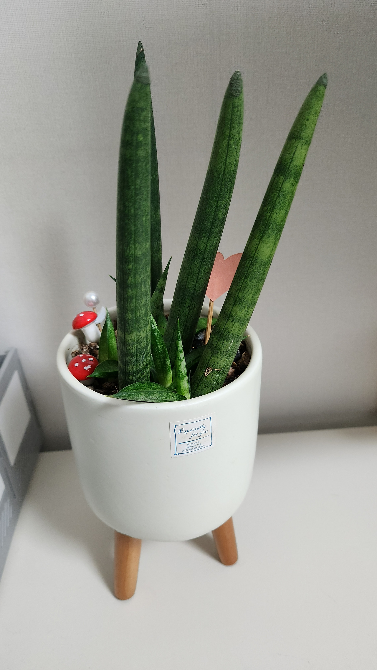 스투키는 너무 변함이 없어서 재미가 없었던 식물이었어요. 그저 병충해를 입거나 무르지 않기를 바라며 흙이 마르면 물을 주었어요. 식물들도 물을 많이 필요로 하는 식물이 있고, 적게 필요로 하는 식물들이 있죠. 그중 스투키는 물을 적게 필요로 헀어요. 매일 바라봐도 물을 매일 주지는 않았어요.