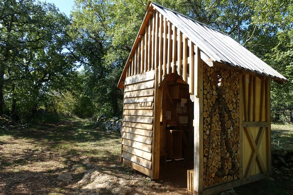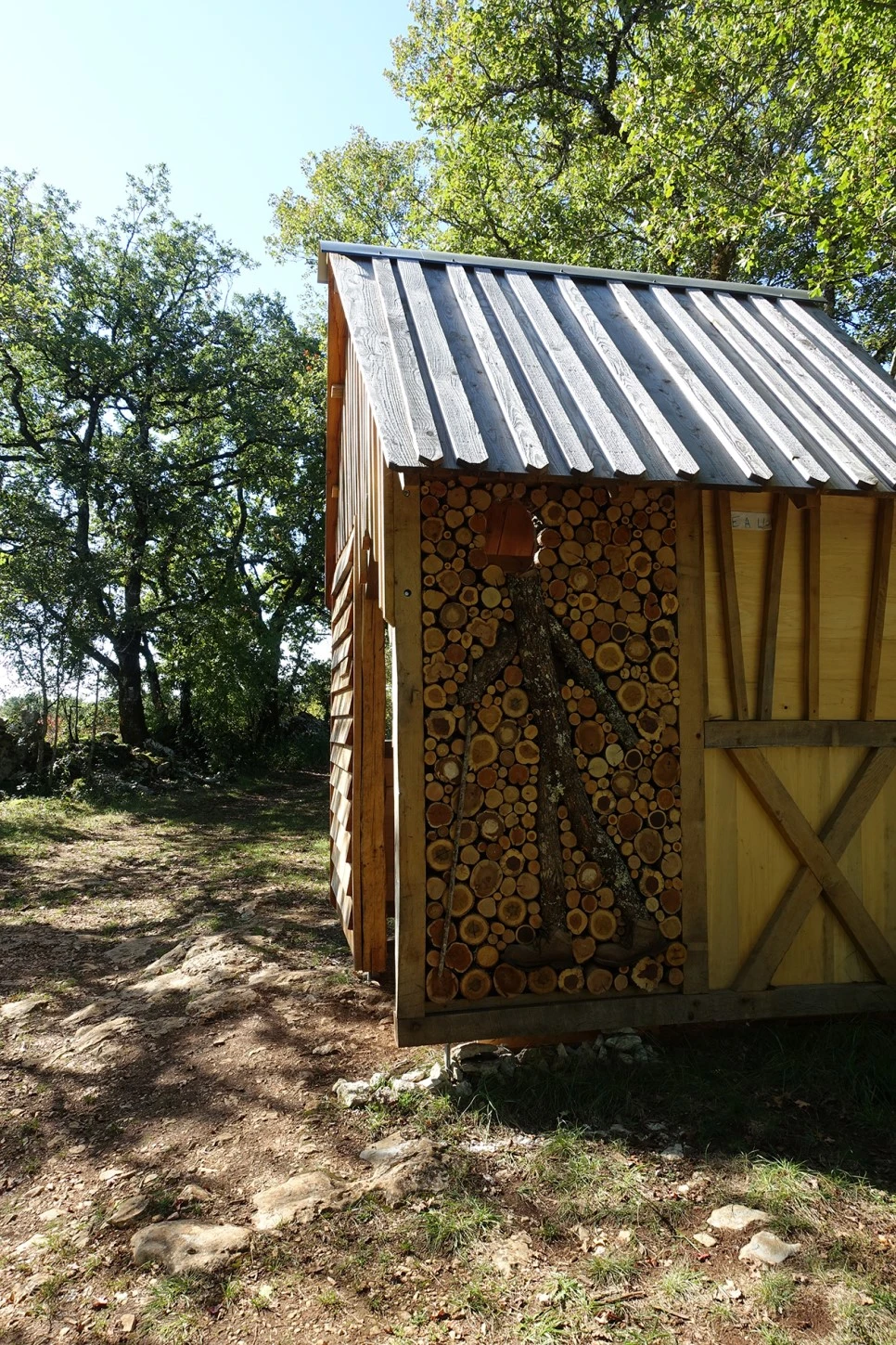 숲길을 걷다가 갑자기 발견한 나무로 만든 쉼터. 이 곳에서 점심을 먹는다.