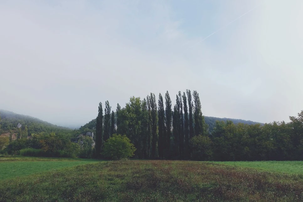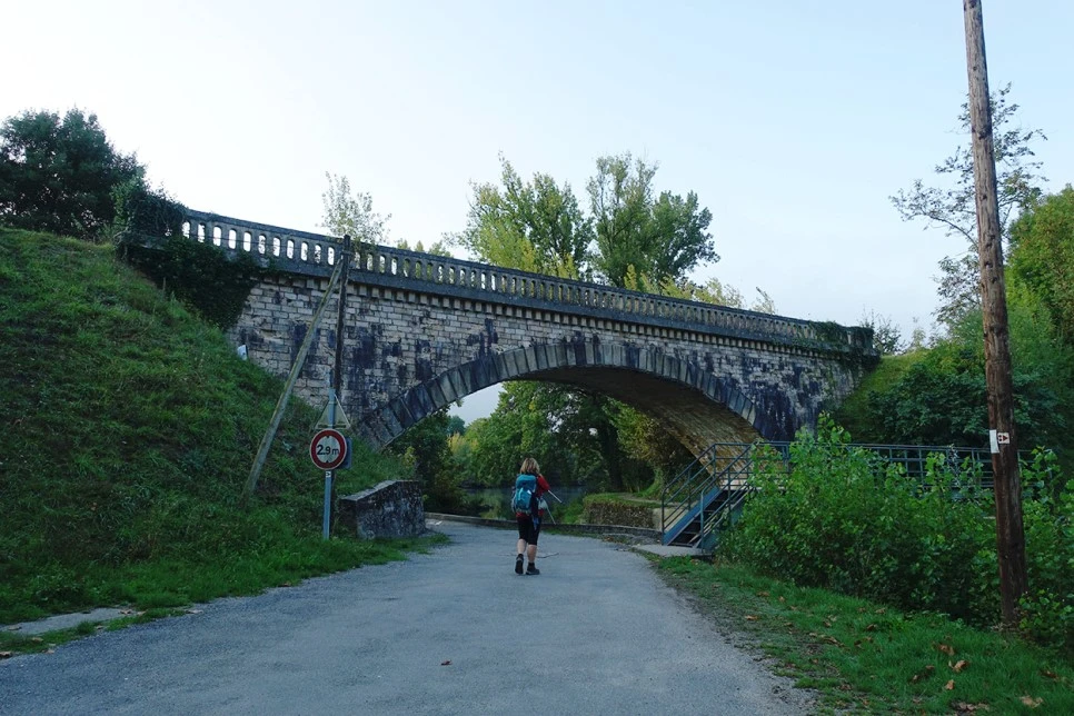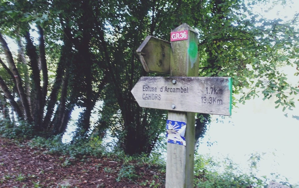 한참동안 지트 옆 다리 사진을 찍고 강을 따라 간다. GR마크도 있지만 초록색 화살표도 있다. 어제 저녁식사때 지트 사장님이 따라가라던 표시가 저 초록색 화살표인 모양이다. 그것들을 따라가고 있을 때 저 멀리 캠핑장에서 아침식사중인 쟝과 친구 둘이 보인다. 쟝이 쏘오오아아아아아ㅡ 하면서 신나게 손을 흔든다. 친구들도 벤치에 앉아 손을 흔든다. 내가 손가락으로 화살표를 가리키며 나 카오르로 가! 하고 외치니 뭐라고???? 하는 답변이 들린다. 대화를 나누기에 너무 멀다. 그냥 안녕 손을 흔들고 프랑신과 루시를 따라잡는다.