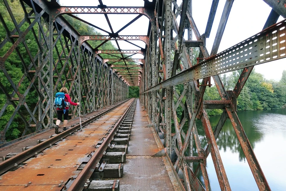 이제는 쓰지 않는 멋진 기찻길과 그 기찻길이 놓인 다리를 건너 간다. 한참 숲 사이로 난 길을 걷는다. 강변을 따라 난 길은 참으로 아름답다. 주말이라 그런지 아침부터 낚시 하는 부자, 카오르에서 여기까지 조깅 온 사람, 강을 따라 자전거를 타는 사람들을 만난다.
