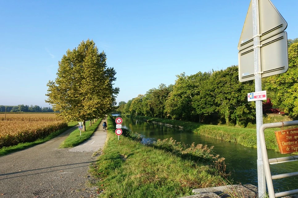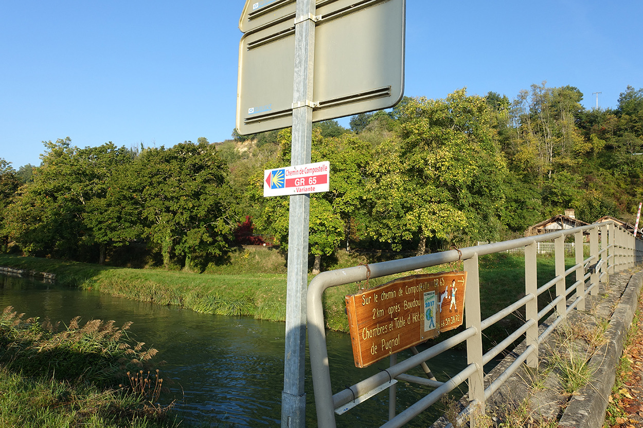 이유를 알 수 없지만 몽퀵을 떠날 때 보다 비교적 가벼운 마음이다. 길도 평탄하고. 조금 더 가벼운 발걸음을 느낀다. 므와싹 시내를 한참 걷고 나온 후부터는 약간 지루한 운하길을 걷는다. 거기에 평지길. 산길을 탈까 고민했지만 이제부터는 많이 걸을 거니까 하고 안전한 평지길을 택한다. 짙은 녹음으로 물든 운하의 물결이 아름답게 일렁인다. 운하길을 걸으며 캐나다, 미국에서 온 순례자 2인방도 만난다. 이들은 앞으로 생장까지 자주 마주치게 된다.