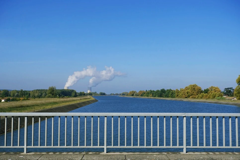강을 건너며 지평선의 원전을 본다. 원전의 굴뚝 연기가 위용을 자랑한다. 햇볕은 점점 강해지고 팔은 이글거리는 빛에 구워지는 느낌이다.