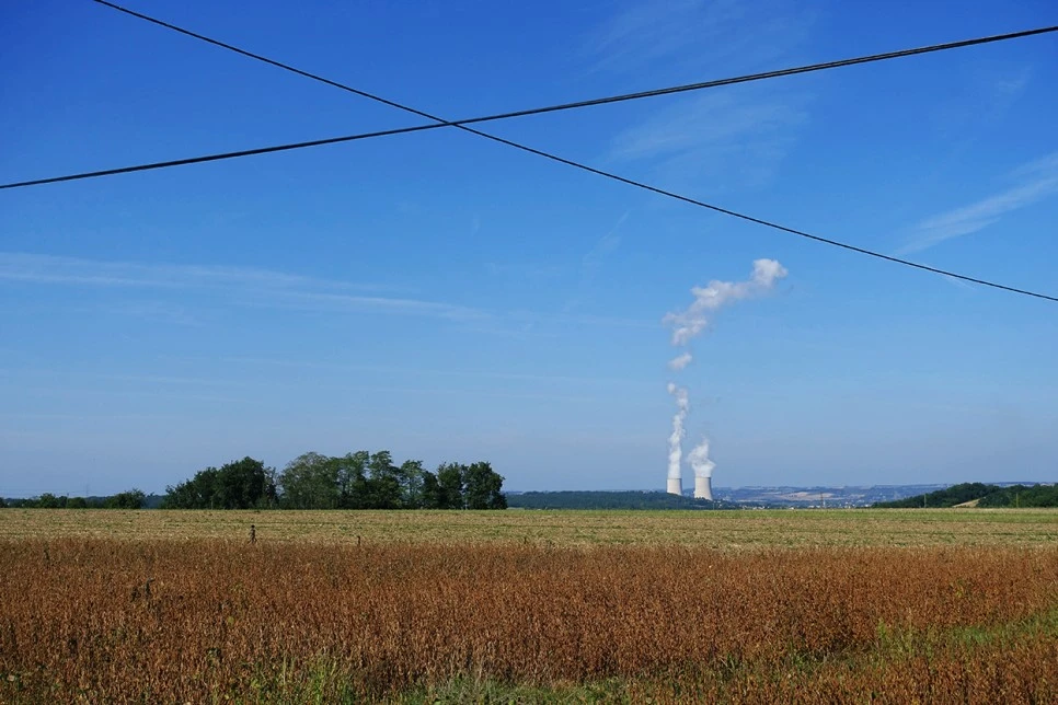 지평선에 원전 굴뚝이 연기를 내뿜는다.