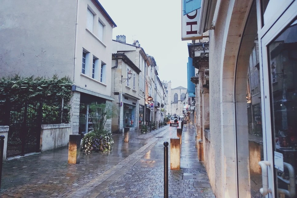 마트에서 장을 보고 먹을 곳을 찾는데 마땅치가 않다. 바로 옆 카페에서 차 한잔 시키고 내 음식을 먹자니 예의가 아니어서 민망하기도 하고. 그때 어제 같은 지트에서 묵었던 선생님 순례자가 다가온다. 이제 조금 친해졌는지 스스럼없이 비즈를 해 주신다. 그러면서 너 점심 먹을 거면 여기 계속 비 오는데 이 카페에서 차 한잔 시키고 같이 먹자 신다. 선생님 순례자는 카페로 들어가 주인에게 무어라 말하더니 오케이! 라시며 당신 음식을 꺼내신다. 나도 가서 쇼콜라쇼를 주문하고 선생님 옆으로 가서 내 음식 보따리를 꺼낸다. 바 주인은 쇼콜라쇼와 선생님의 카페오레를 가져오시며, 맛있게 먹으라고 인사해주신다.