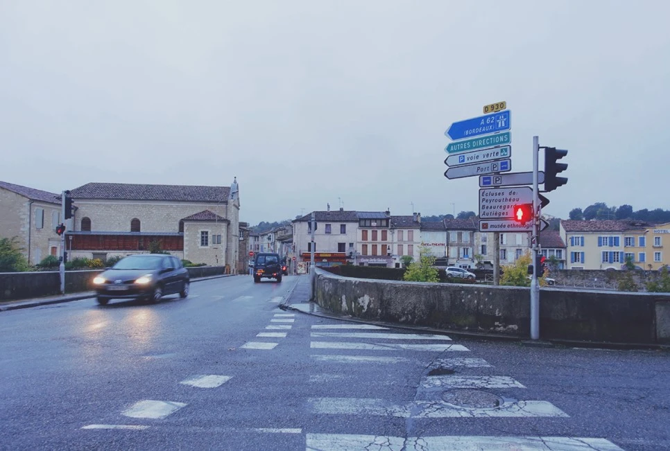 잠깐 동안 내 길 이야기를 하는데 금방 마을에 도착한다. 아주머니는 이 곳에서 점심을 먹는 게 좋을 거라며 한 슈퍼 앞에 내려주신다. 아주머니도 그 슈퍼에서 장을 보실 모양이었다. 너무 감사하다. 메흐시 보쿠! 이름이 궁금하여 여쭈니 베로니크라신다. 붉은 머리의 베로니크 아주머니, 정말 감사했습니다.