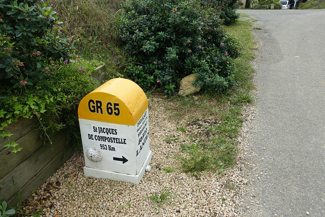 물도 마시며 쉬고 있는데 아저씨 하나가 온다. 아저씨도 내 옆자리에 자리를 잡고 쉰다. 이제 한달쯤 되다 보니 왠만한 분들은 이름은 몰라도 얼굴은 익은데, 이분은 낯설다. 인사를 나누니 파리에서 왔단다. GR65길을 나누어 매년 조금씩 걷고 있는데 이번에는 에흐슈흐라두흐부터 혼스보까지 걷는 순서란다. 이번이 드디어 GR65 마지막 구간이라고 기뻐한다.