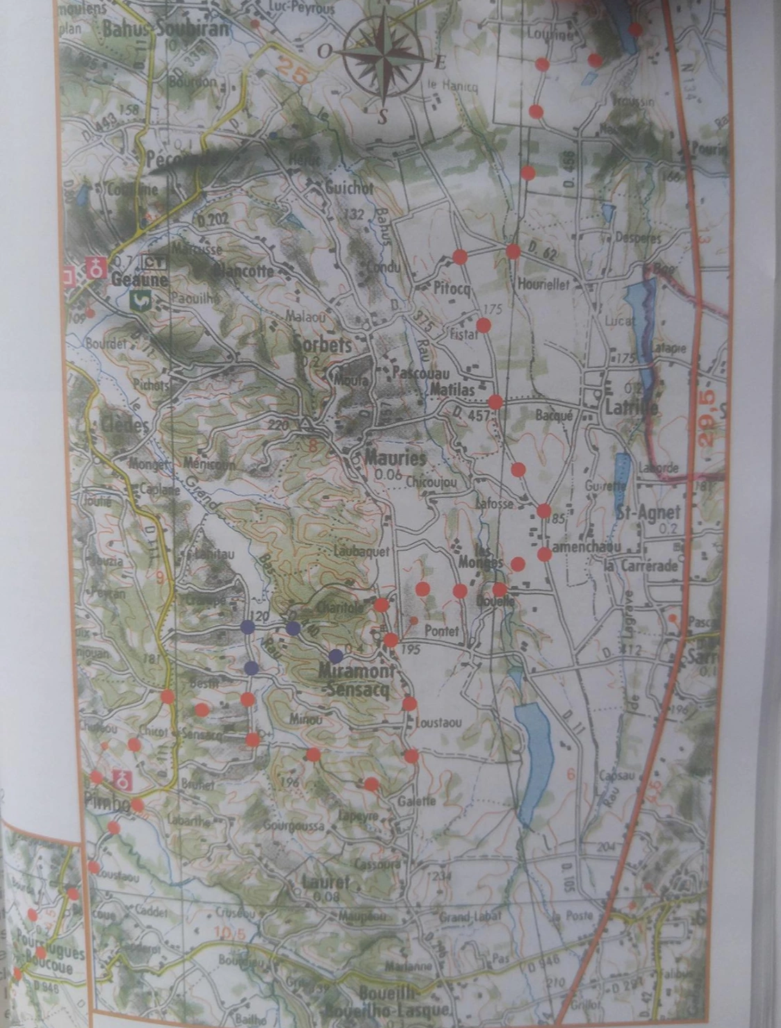 아저씨는 내게 에흐슈흐라두흐부터 18km거리에 있는 미라몽에서 우회하면 2~3km는 줄일 수 있다면서 내게 왼쪽 사진의 지도를 보여주었다. 혹시나 모르니 사진은 찍었지만, 일전에 콩크 가던 날 엘로디와 길 잃었던 생각이 떠올라 그냥 내 길을 따라 가야지... 하고 생각한다. 아무래도 이 아저씨는 오늘 길을 시작해서 그런지 에너지가 넘치신다. 나도 분명히 르퓌에서는 이렇게 에너지가 넘쳤더랬지 하고 시작하던 날의 생각을 한다. 매일같이 길을 걸으면서도 길을 시작하던 날을 그리워한다.