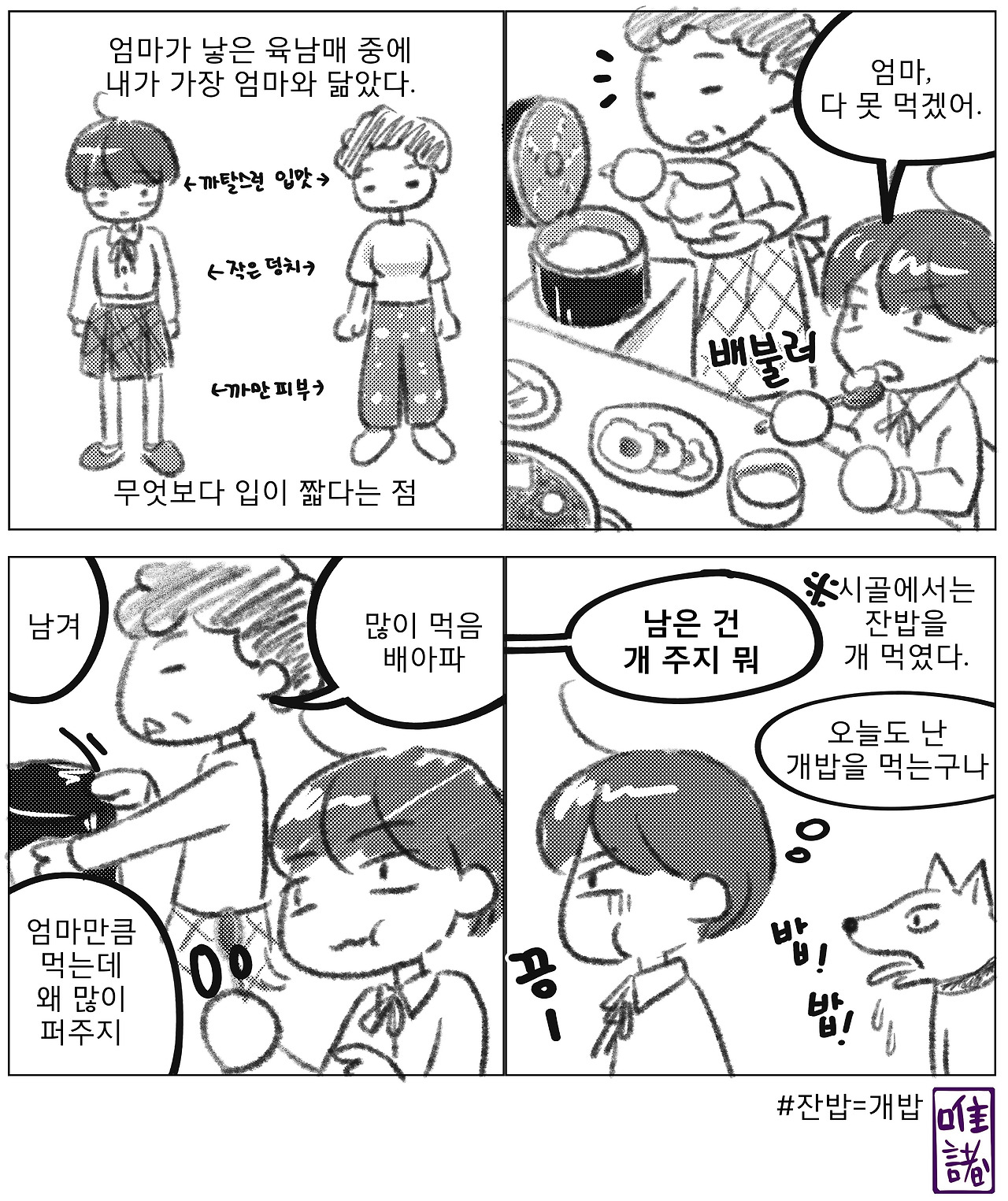 하지만 엄마를 닮은 나는 입이 짧아서 항상 밥을 남겼다.