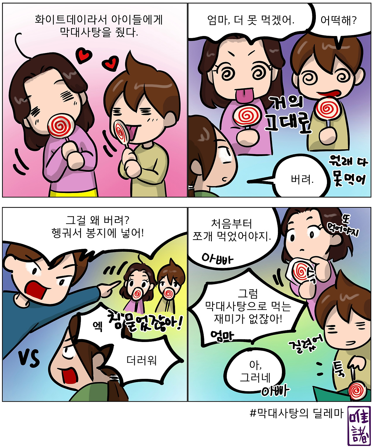 쪼갤 거라면 처음부터 막대사탕을 살 이유가 없으니까.