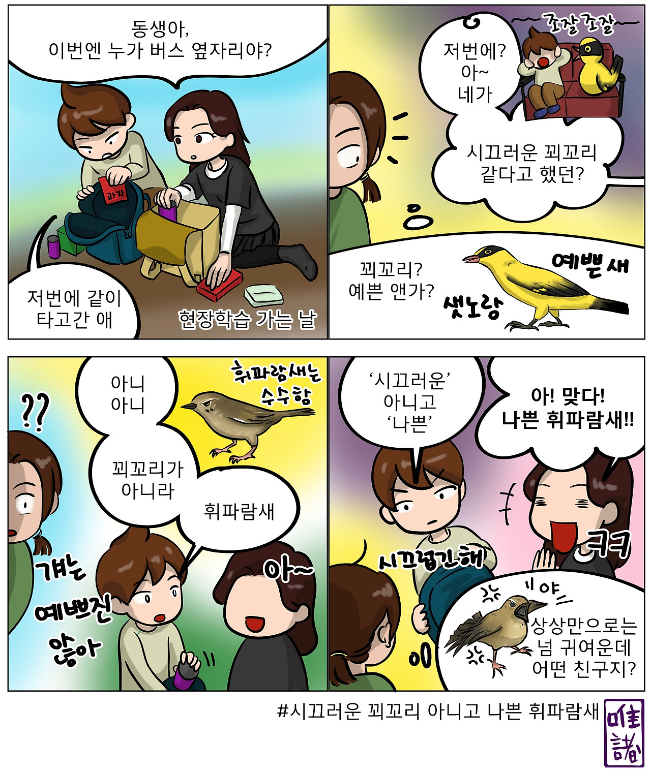 “아니, 아니. 꾀꼬리가 아니라, 휘파람새.”