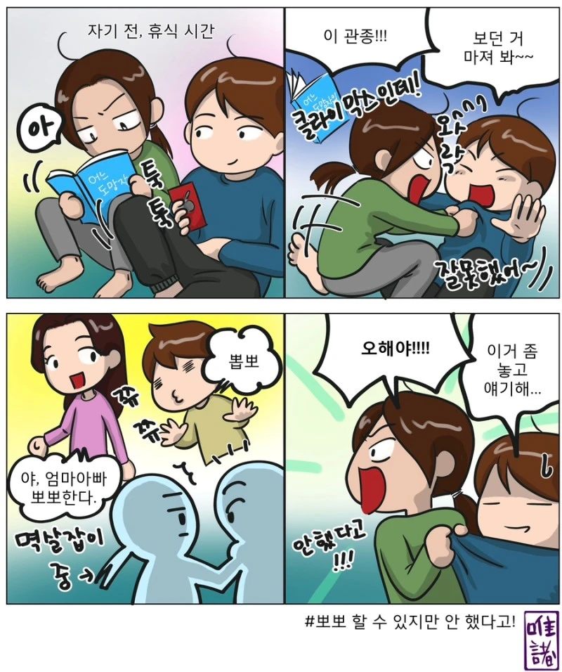 아낌없이 애정표현을 한다.아이들이 커갈수록, 사이좋은 부모의 모습을 보여줘야 한다고 생각해서,자주 안아주고, 뽀뽀도 해주고 한다.남편과 포옹을 하고 있으면 그냥도 좋지만,그 사이에 꼬물꼬물 아이들이 끼어 들어와서,