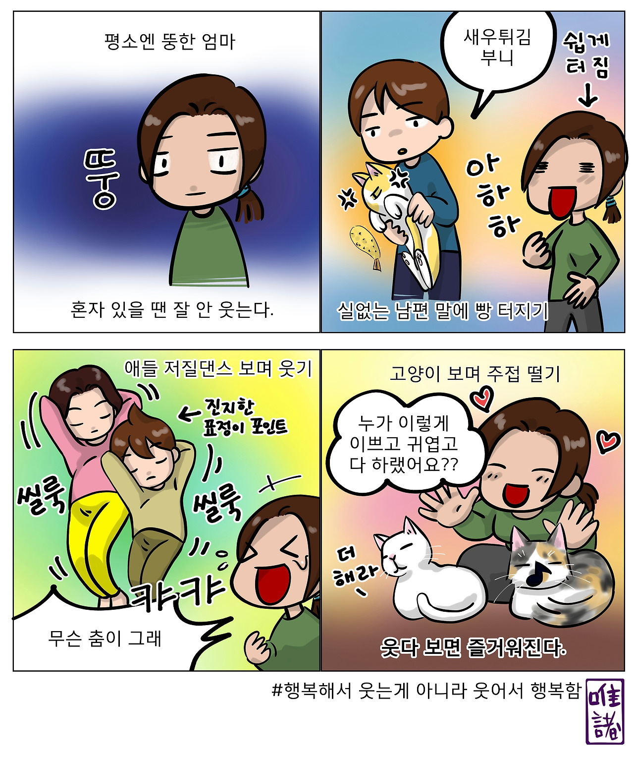 혼자 있으면 사람이 잘 웃게 되지 않는다.