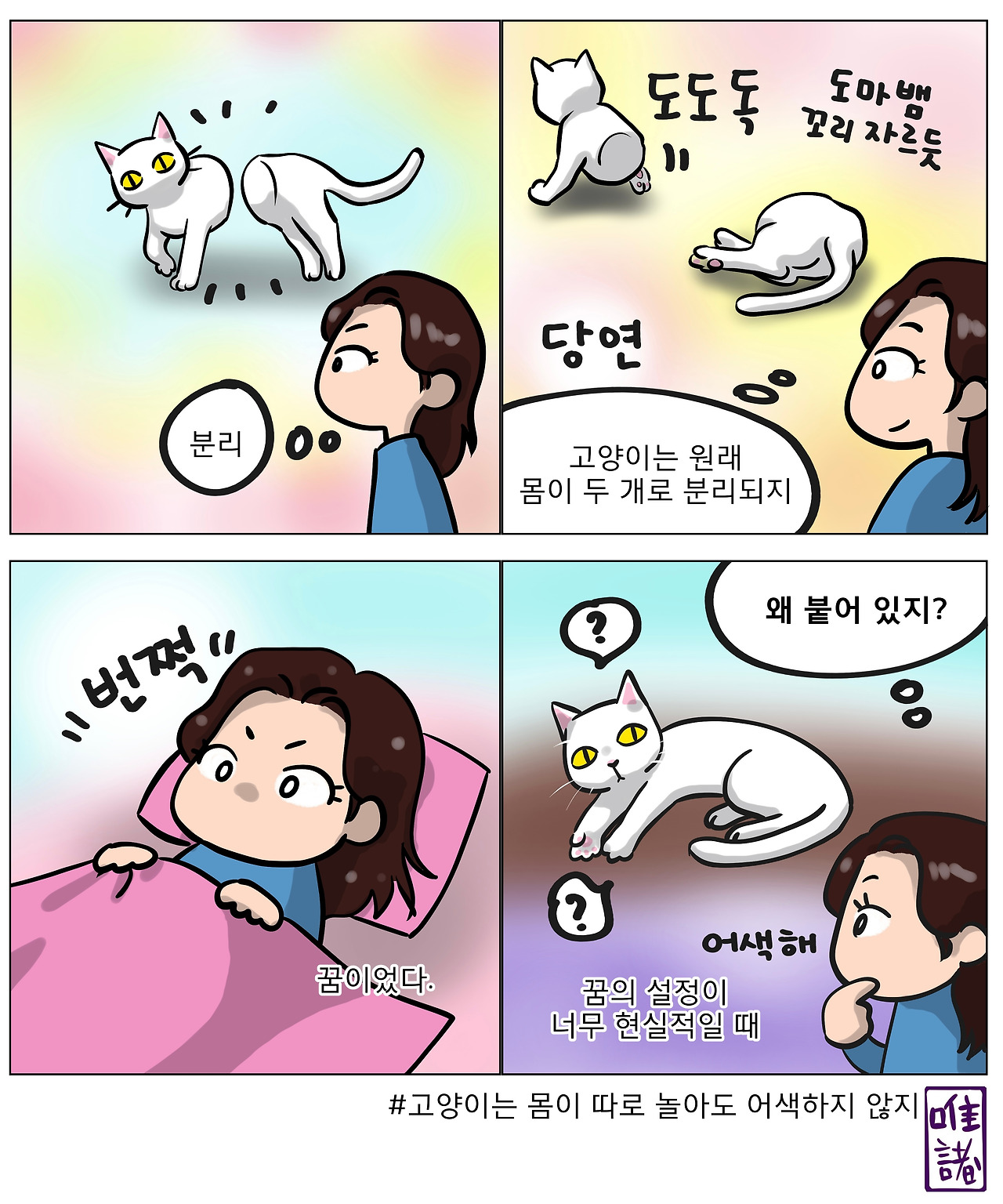 “엄마, 원래 고양이는 몸이 분리되는 거지?” 하며 묻는데,