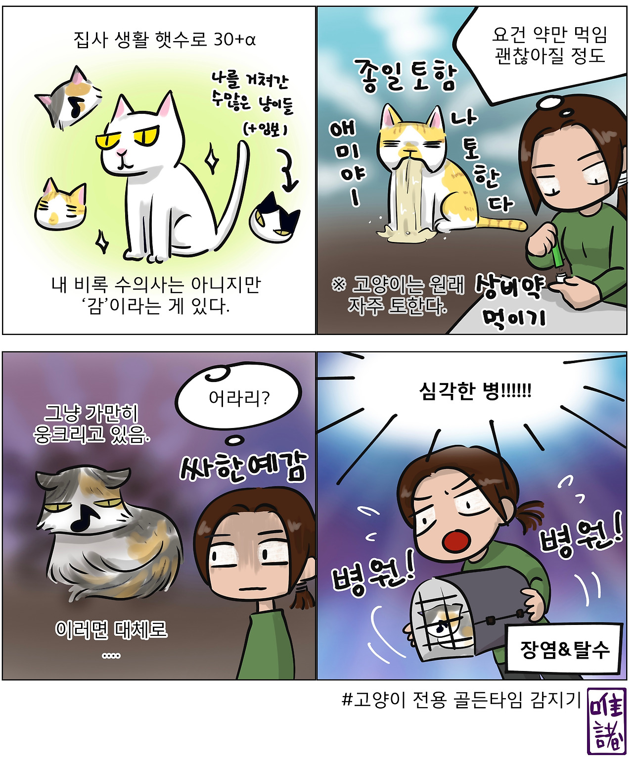 늦지 않게 동물병원에 데려가는 것도 집사의 덕목이니까.