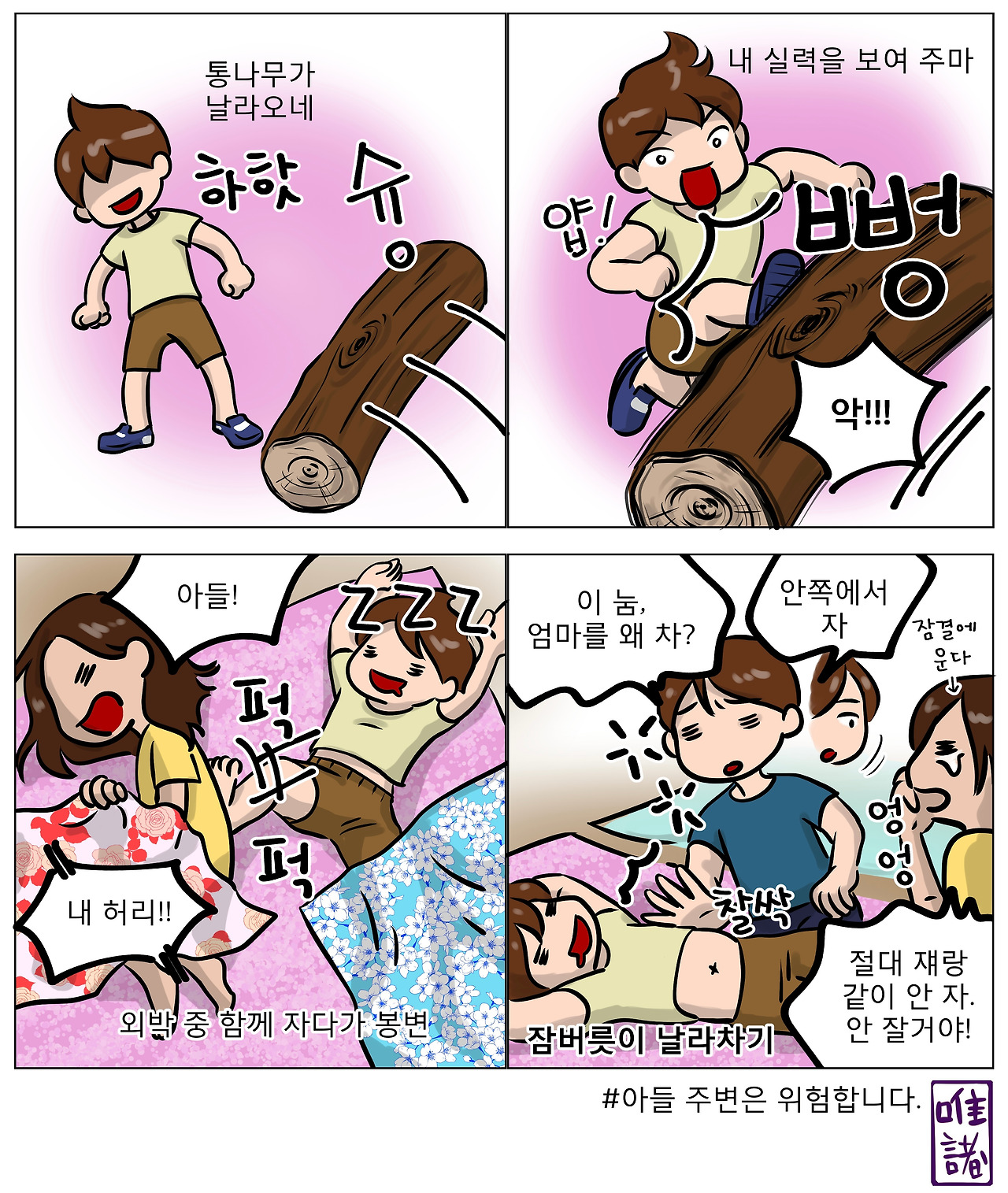 아들 옆은 위험합니다.