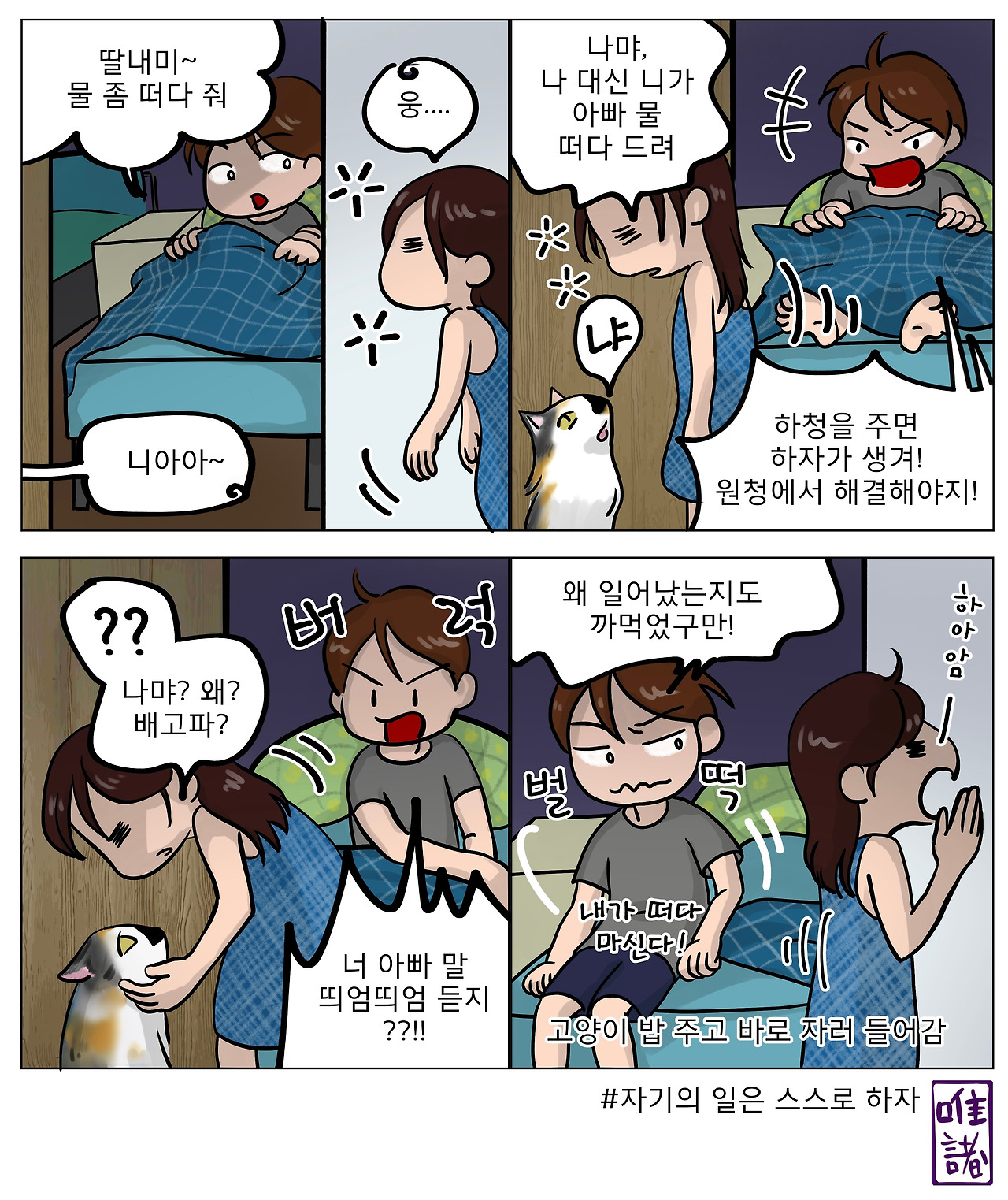 “딸내미~, 물 좀 떠다 줘.”