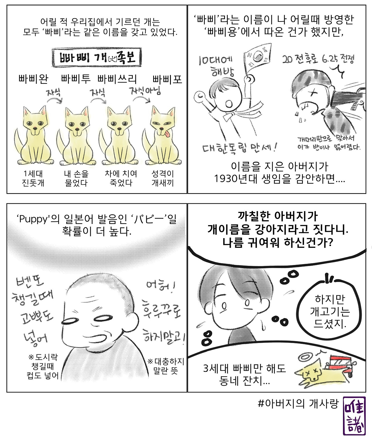 #아버지 #개사랑 #빠삐 #퍼피 #puppy #パピー #우리집 #진돗개 #옛날이야기 #소박과궁상사이 #흑백툰 #월요일연재 #일상툰 #인스타툰 #4컷만화