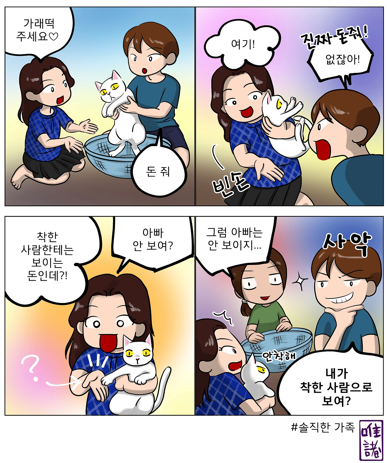 #가래떡 #주세요 #돈줘 #착한사람에게만보이는 #아빠안보여 #사악한웃음 #딸스타그램 #남편스타그램 #소박과궁상사이 #컬러툰 #목요일연재 #일상툰 #인스타툰 #4컷만화