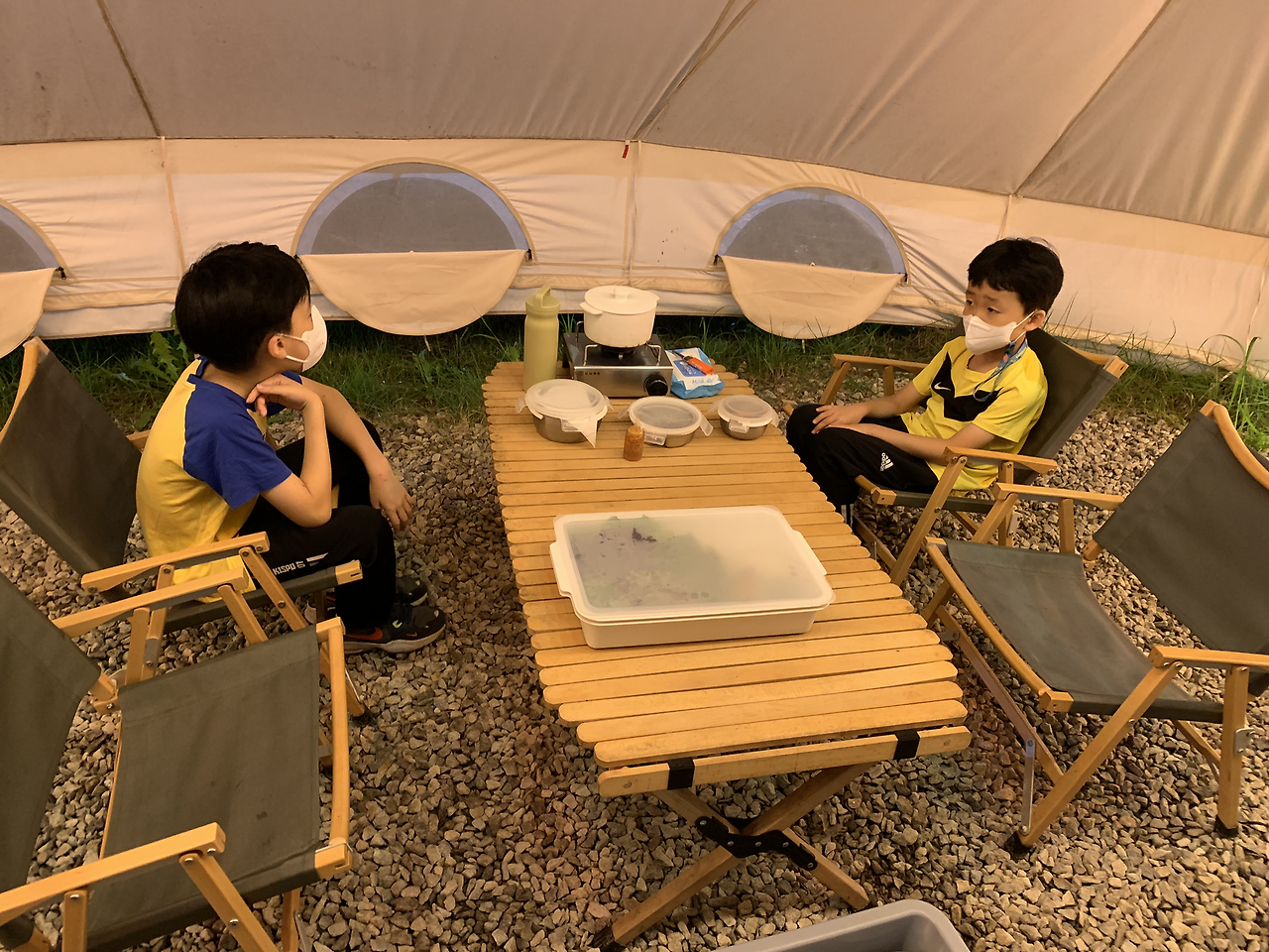 저녁에는 운동장에 마련된 캠핑 사이트에서 바베큐를 즐길 수 있는 옵션이 있어 주저없이 선택했다.