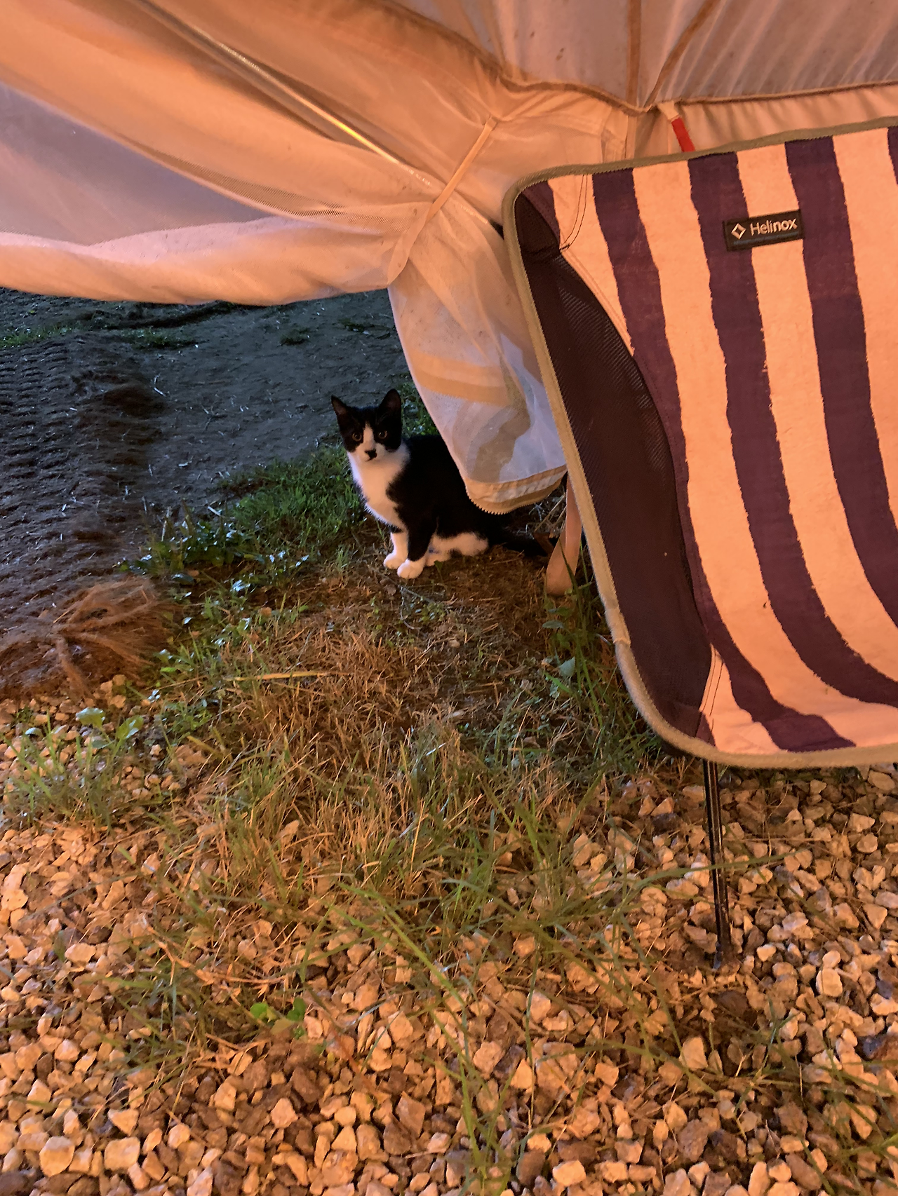식사가 시작될 무렵, 드디어 첫째를 위한 무료 옵션인 고양이 게스트가 출현했다. 짐작컨대 주변에 있던 고양이들이몇집에서 바베큐를 굽기 시작하니 냄새에 홀려 모여든 것 같다. 아이들은 밥먹을 생각도 없이 고양이와 숨바꼭질 하기에 바빴다.