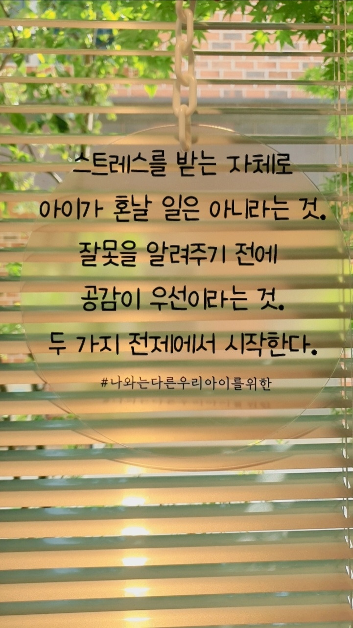 물론 잘못된 행동은 알려주는게 맞다. 아무리 화가 나도 좋지 못한 말은 삼가야 한다. 아무리 화가 나도 다른 사람에게 상처주는 행동은 하지 않아야 한다. 다만, 공감이 먼저다. 짧게 공감, 짧게 교정. 자세한 부연 설명은 아이의 마음이 풀리고, 스트레스 감옥에서 빠져나온 뒤에 해도 늦지 않다. 아이들도 안다. 내가 지금 하는 행동이 조금 어긋났다는 것을. 스트레스를 받아 조금 사나워졌다는 것을. 조금 차분해진 아이에게 설명해주면 고개를 끄덕이며 인정한다. 아이에게 시간을 주자.