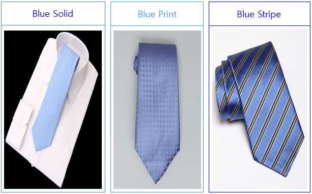 셋 째는 Necktie인데, Necktie 역시 Shirt에서 설명한 바와 동일하게 Blue 계열이 가장 무난하고, 사선으로 되어 있는 Stripe나 튀지 않고, 작은 Dot가 들어간 것도 Point로 괜찮다.