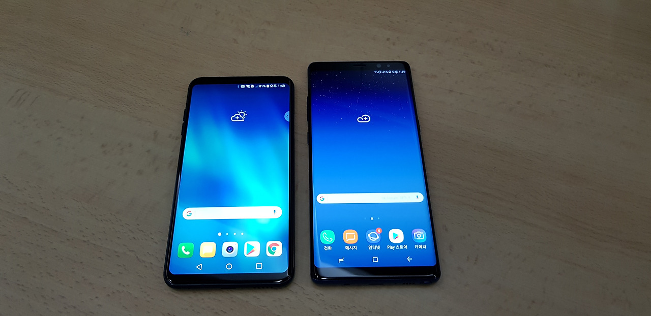 AP(스냅드래곤 835)에 디스플레이(OLED)에 방수방진에 3300mAh 배터리에 OS 버전(안드로이드 누가)까지 대부분 스펙에서 비등비등한 수준. 특히 항상 AP 스펙에서 콩라인의 스멜을 콩라인의 스멜을 진하게 풍겼던 LG가 작심함. 다만 램은 4GB로 갤노트8보다 2GB 부족. 역시나 콩라인. 역시나 콩라인. SW나 최적화에서 부족함이 많다고 지적 받는 LG이다보니 부족한 램이 어떤 문제를 초래할 지는 걱정이 되지만 아직 불분명. 하이스펙 게임이나 벤치마크 앱이라도 돌려보면서 비교해보면 성능 차이를 알겠지만 그건 전문가들이 해줄 것 같아서 패스. 일반적인 이용 범위 내에서는 성능 차이 전무.