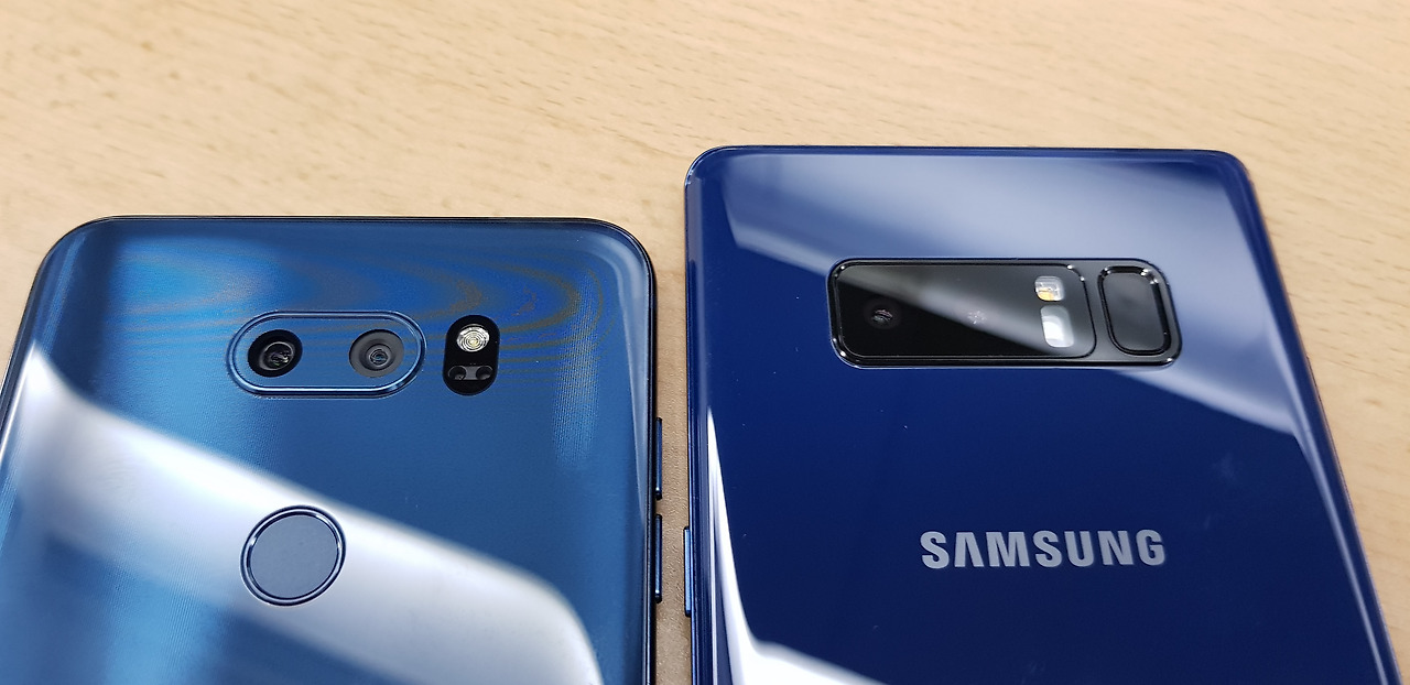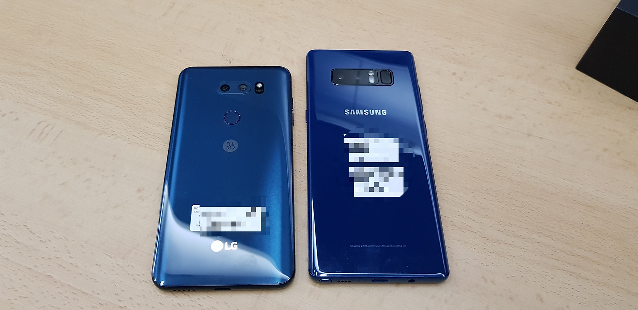 갤노트8. 우선 갤S8 때부터 꾸준히 지적했던 지문센서의 위치가 여전함. 지문 인식 하려다 후면 카메라 렌즈에 빼곡하게 지문을 찍게 됨. 위치도 매우 찐따 같아서 폰을 왼손에 파지하는 오른손잡이들에겐 터널 증후군을 유발한다. LG G5를 냉큼 따라한 듀얼 렌즈인지 뭔지 때문에 지문센서 위치가 더 거지 같아졌음. 무게는 195g으로 V30(158g)보다 무려 37g나 더 무겁다. 무겁기로 소문난 아이폰7+ 보다 무겁고, 배터리 용량도 더 컸던 갤노트7보다 무겁다. 여하튼 무겁다. 셀카 찍다가 뜻밖의 전완근 단련. 갤S8보다 좀 더 직사각형에 가까운 디자인으로 들었을 때 그립감은 좋은 편. 아, 시그니처 컬러인 딥씨블루 일명 ‘용달블루’는 어두울 때 보면 괜찮으나 밝은 곳에서는 용달차 짐칸에 올려두면 못 찾는 간지. 뭣보다 렌즈모듈 색깔(검은색)과 기기 컬러와의 괴리감이 심해서 안 예쁨.