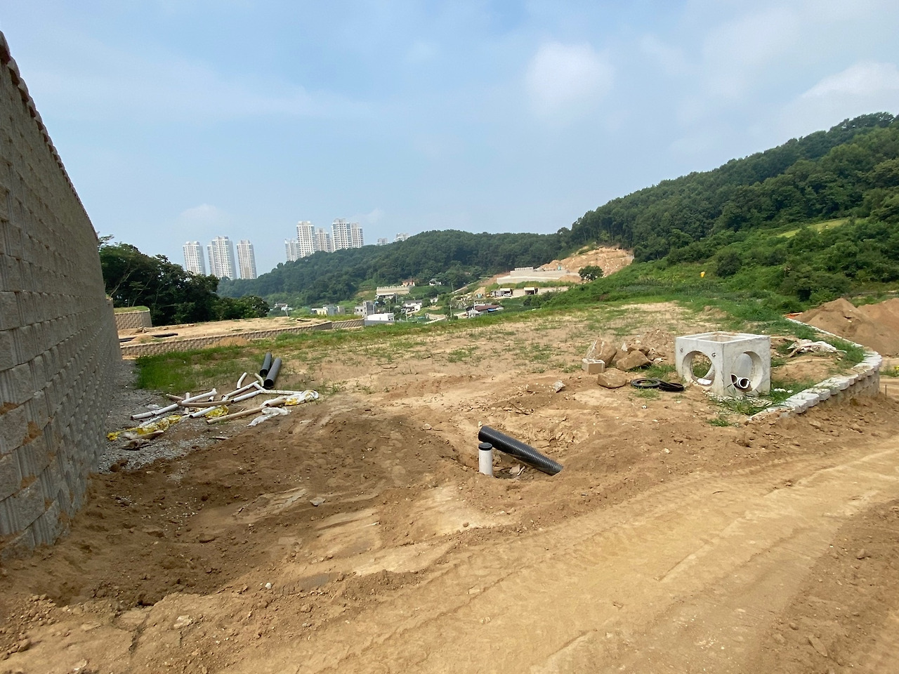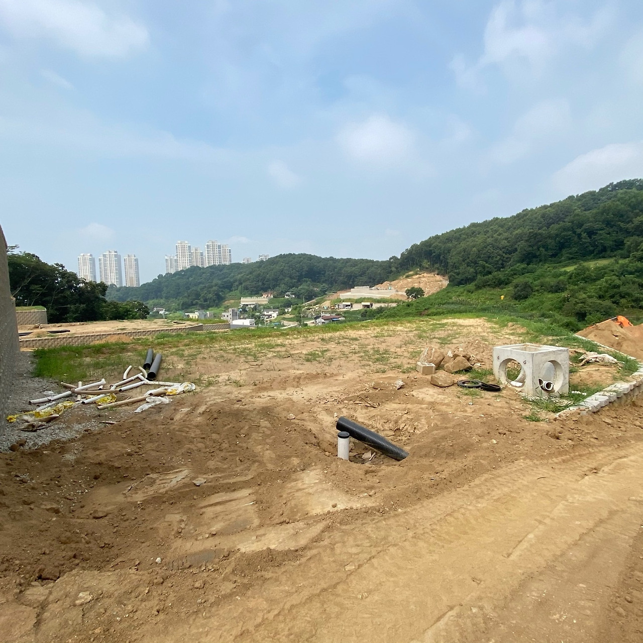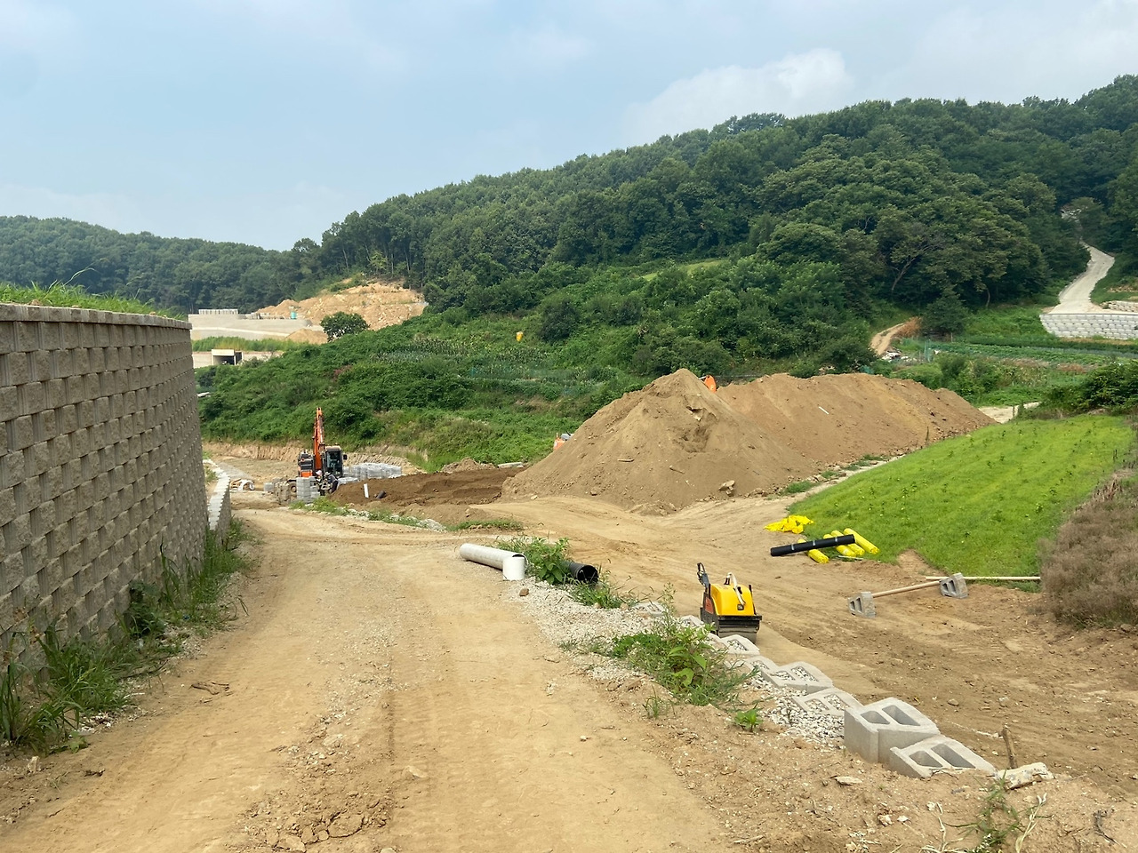 다음 이슈는 5월 말이었다. 계약 시 빠르면 5월 완공을 이야기해서 어느 정도 진행되었나 땅을 보러 갔는데 토목공사에 문외한인 내가 봐도 도저히 끝날 것 같은 상황은 아니었다. 사장에게 연락해 보니 비가 좀 길게 와서 7월 즈음 마무리 된다고 했다.
