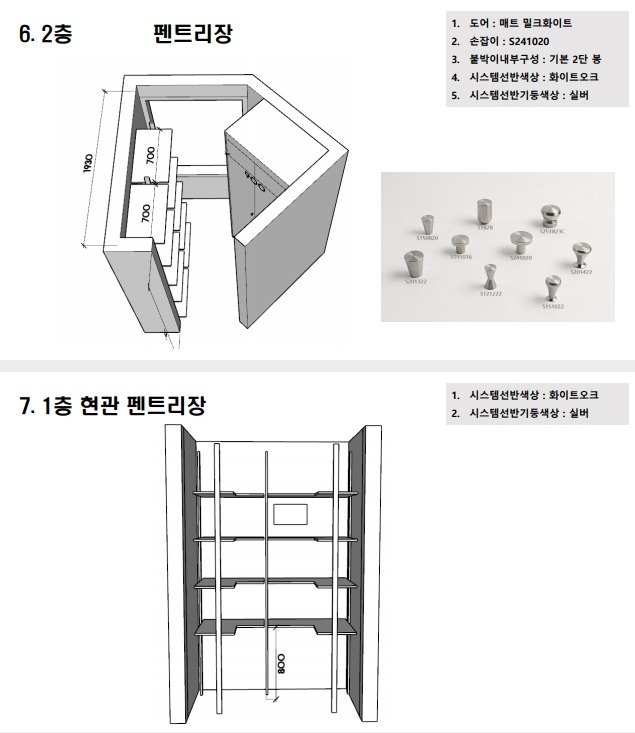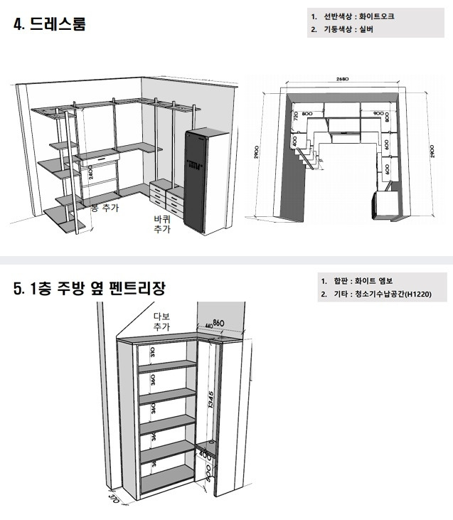 시공사에서 해주는 내부 인테리어는 창호와 마루, 도배, 조명, 화장실과 욕실 기물 일체, 현관문, 다용도실 방화문, 계단 난간 정도다. 나머지는 건축주가 채워야 한다. 특히 주방은 텅 비어 있다. 시공사와 연계된 국내 대형 인테리어 업체가 있었는데, 우린 내부 인테리어는 지역 업체에 맡기기로 했다. 블로그의 평보단 포트폴리오를 보고 우리 스타일에 맞는 업체를 택했다.