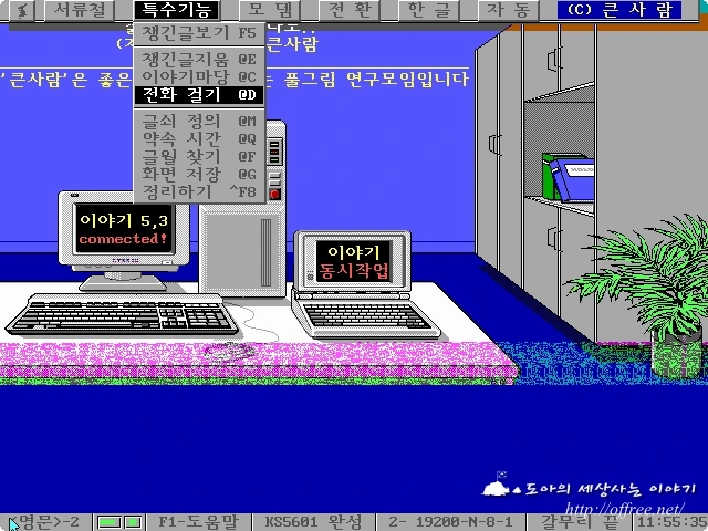 ‘이야기’라는 프로그램을 실행한 후 ‘ATDT 01410’을 입력하면, ‘지~지익~칙’하는 소리와 함께 ‘하이텔’에 접속할 수 있었다. PC통신에 접속한다는 것은 모뎀을 사용한다는 것이고, 모뎀을 사용한다는 것은 우리 집 전화선이 통화중이 된다는 것이며, 통화중이 된다는 것은 전화요금이 나간다는 것을 의미하였다. 한 마디로, 있기는 하지만 쉽게 사용하기는 어려웠다는 뜻이다. 젊은 시절 나름대로 공대 출신의 얼리어답터였던 아버지 덕에, 우리 형제는 신문물을 비교적 빠르게 접하기는 했다고 생각한다. 하지만, 마음 껏 활용하지는 못한 것 같다. 그럼에도 불구하고 PC통신은 우리 형제의 삶에 정말 큰 영향을 주었다.